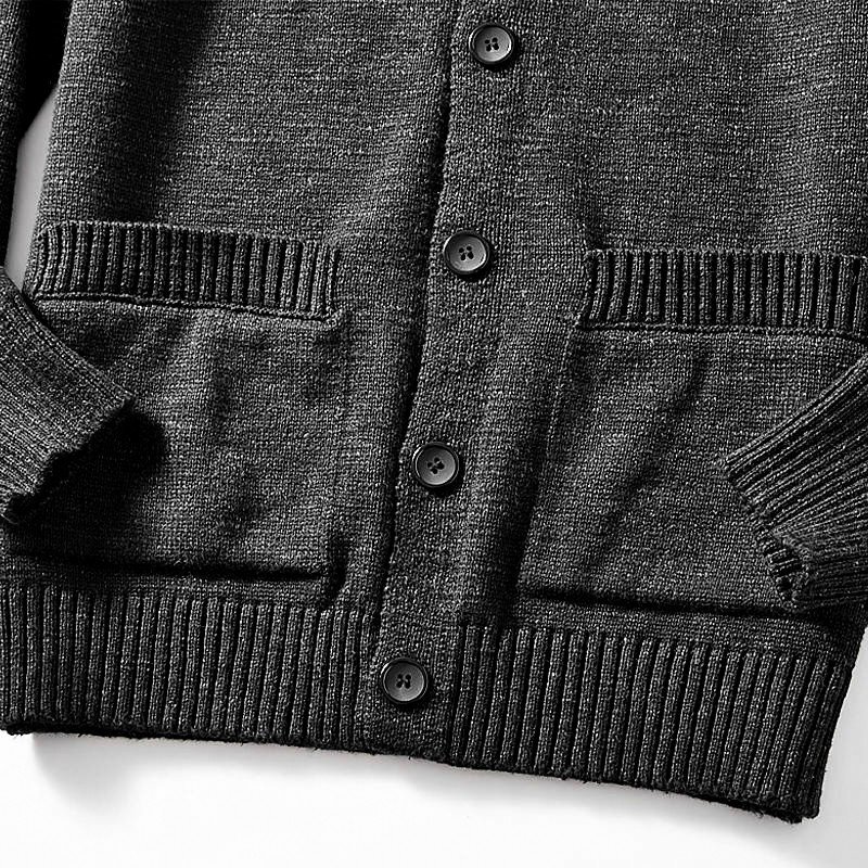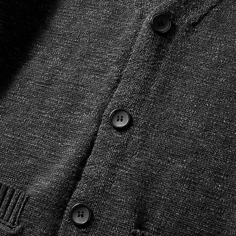 新品 ウール混 カーディガン ストレッチ ノーカラー 厚手 暖かい 秋冬 柔らかい Vネック 無地 メンズ ニットセーター 黒 T8105-2XL