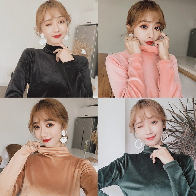 1スタ☆良質とろみベロア素材 ハイネックカットソー Mサイズ 美ライン 長袖 レディース タートルネック ロンT 無地 綺麗め K-091-6ワインレッド