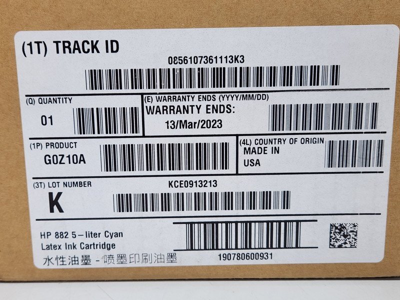 | [未使用] HP 純正 インクカートリッジ シアン 882 5L Cyan Latex Ink Cartridge G0Z10A Latex R2000 / R2000 Plus 期限切れ | |