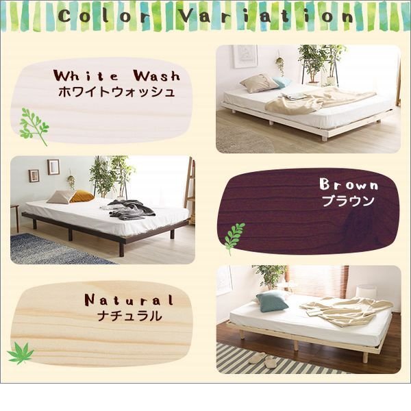 | <ベッド> 【カラー】 ブラウン、ナチュラル、ホワイトウォッシュ 【サイズ】 幅120x奥行200x高さ6/16/26cm 【重量】 20kg 【素材】 本体:天然木(パイン材) すのこ:合板(LVL) 表面材:ラッカー塗装(ホワイトウォッシュ、ブラウン) 無塗装(ナチュラル) 【梱包】 サイズ:122x26x20.5cm、重量:21kg 【組み立て品】 お客様による組み立てが必要です。 【ご注意】 サイズ、重量は概算です。 |
