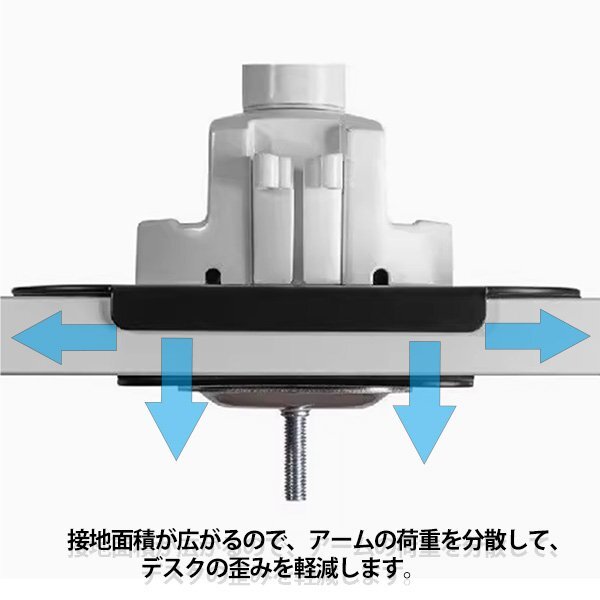 接地面積が広がるので、アームの荷重を分散して、デスクの歪みを軽減します。