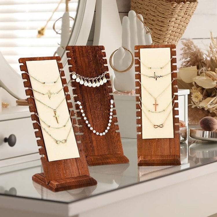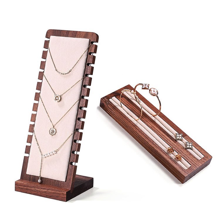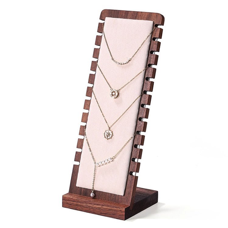 ◆ネックレス ペンダント スタンド 指輪(ブレスレット)収納スタンド 保管 展示 天然木材くるみの木 木目 高級感 ベルベット生地 アクセサリー ジュエリーディスプレイ リングスタンド【ネックレス用縦タイプ】HTMZ158