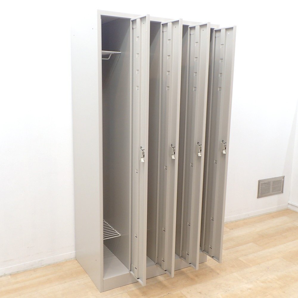 オカムラの4人用ロッカー。オフィス空間になじむグレーカラーです。 庫内は、上部と足元に網棚がそれぞれ備え付けてあるので、お荷物の整理がしやすく便利! 奥行たっぷりの51.5cm!収納力もしっかりで事務室用やスポーツ施設などに最適です。 ぜひ、更衣用ロッカーとしてご活用ください! ※写真で掲載の商品そのものが届くとは限りません。複数入荷した中の1点を掲載している場合がございます。 |