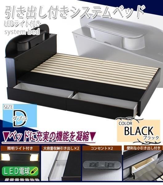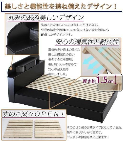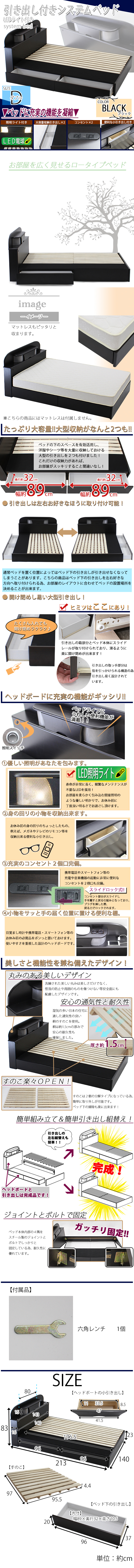 | 商品名 | 引き出し付きシステムベッド ベッドフレーム ライト付き ダブル ブラック 黒 ロータイプベッド システムベッド 低床ベッド すのこベッド すのこ ベッド フレーム 木製 引き出し 照明 LED コンセント付き 収納 収納ベッド マルチ 多機能 桐 lis03dbk |