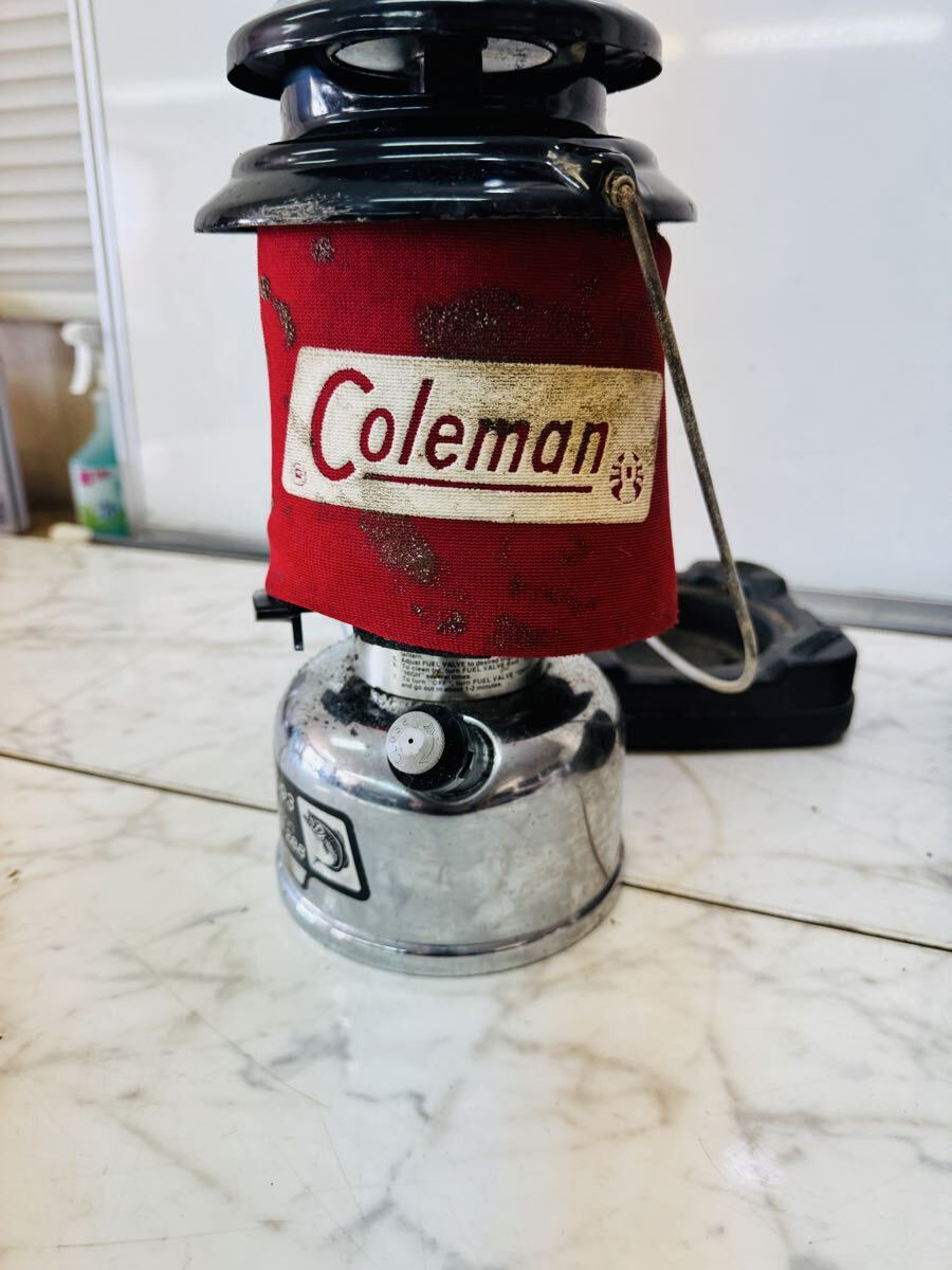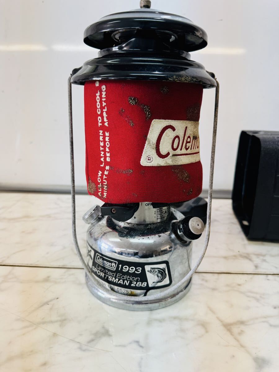 90年代に使用、その後長期間倉庫で保管 【1993年Coleman コールマン ワンマントルランタン model 286-288】 燃料: ホワイトガソリン 全長約30.5㌢ カラー:グリーン 連続点灯時間:4 ~ 7時間