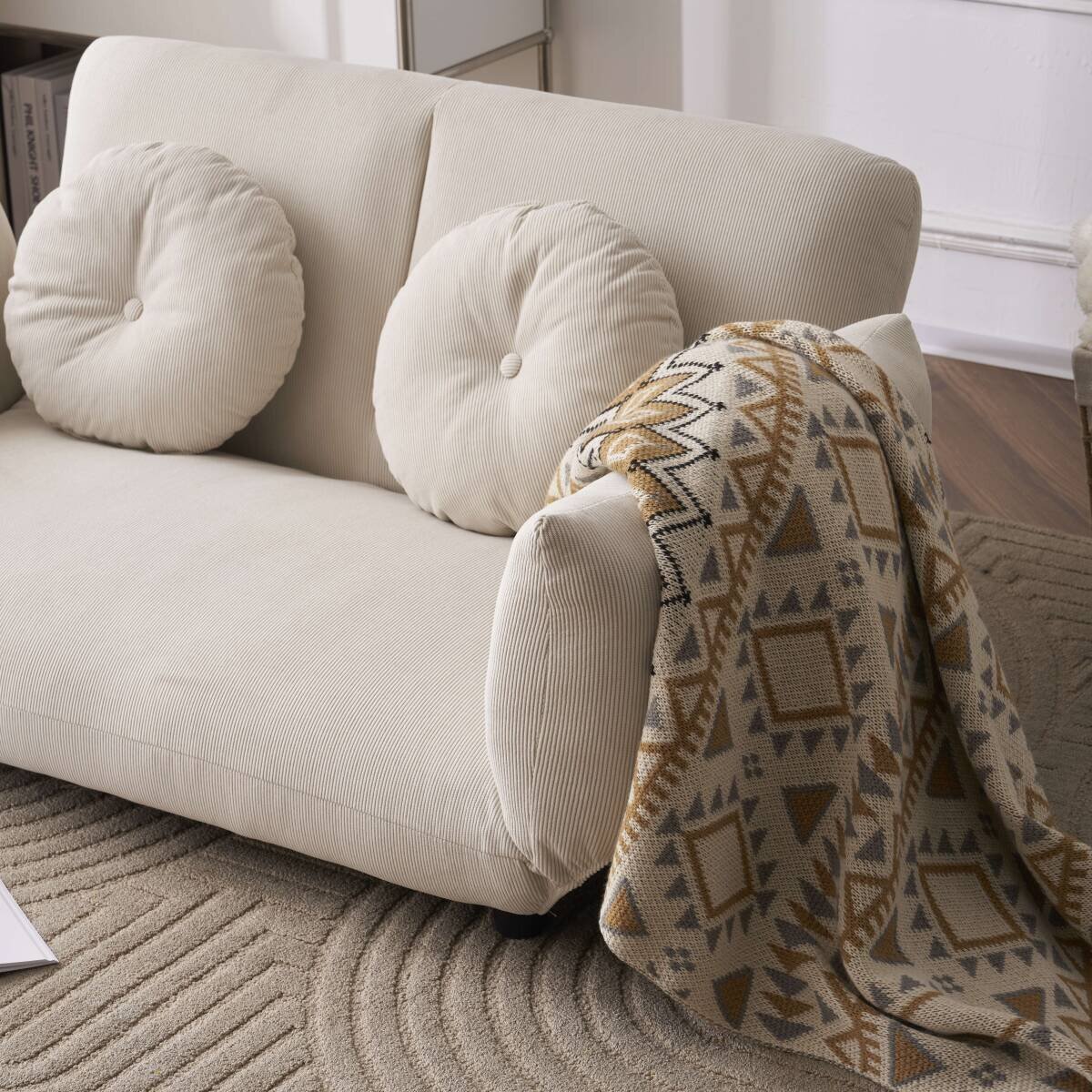 ★【コーデュロイ生地独特の質感】張り地には厳選したコーデュロイは「畝(うね)」のある表面の凹凸感が特徴の生地を採用。凹凸のある生地は肌に触れる部分が少ないため、春や夏も暑さを感じにくい特徴があります。保温性もあるので秋や冬には暖かさを感じられ、季節を問わず快適に過ごせます。