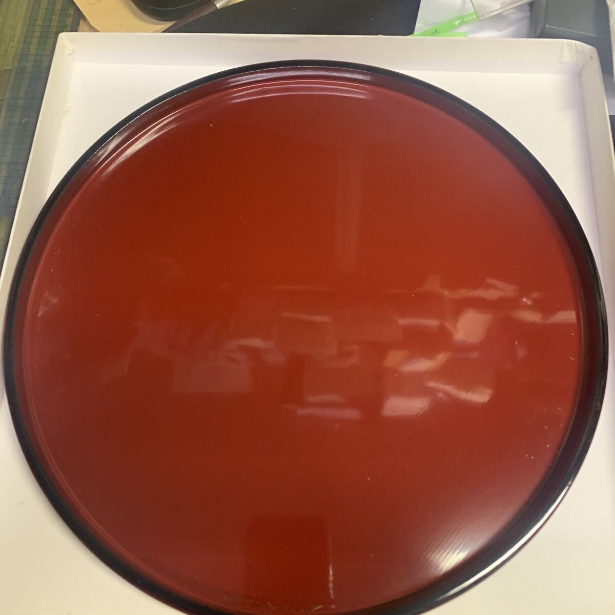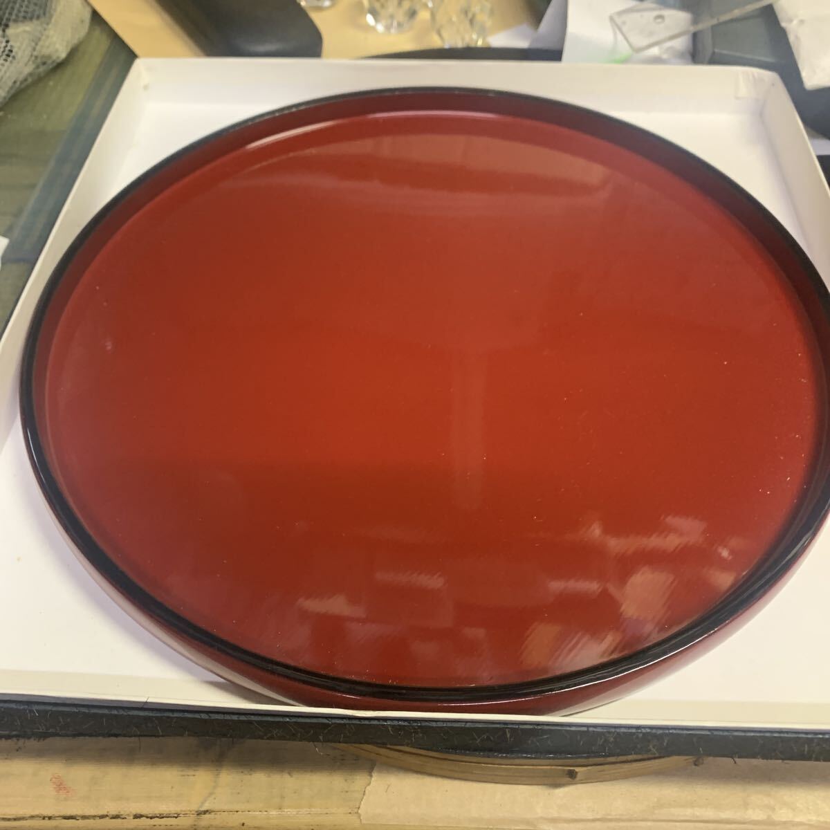 直径30センチ 木製のお盆になります。長期保存のためくすみがあったのでいちど洗っております。ノークレームノーリターンでお願いします。裏面に結婚のお祝いの名前が入っております。