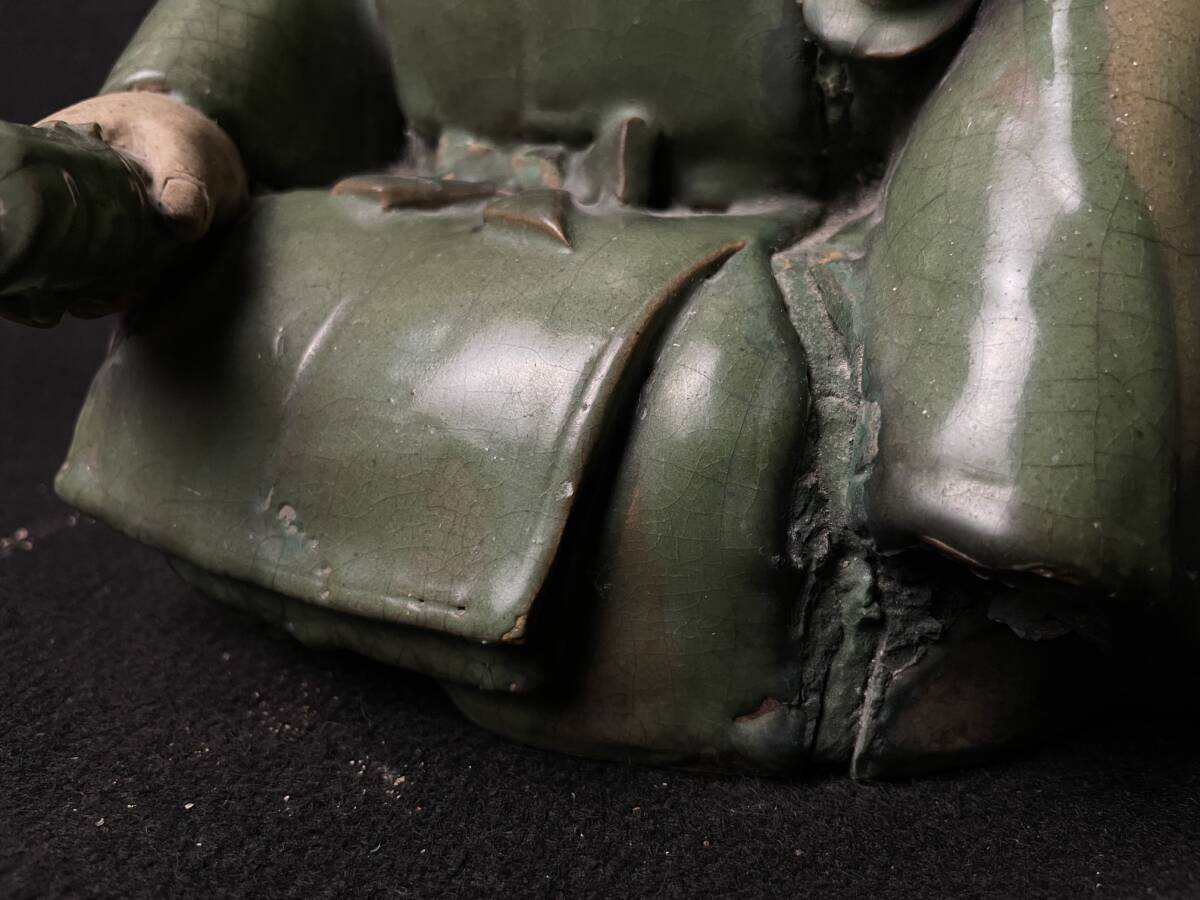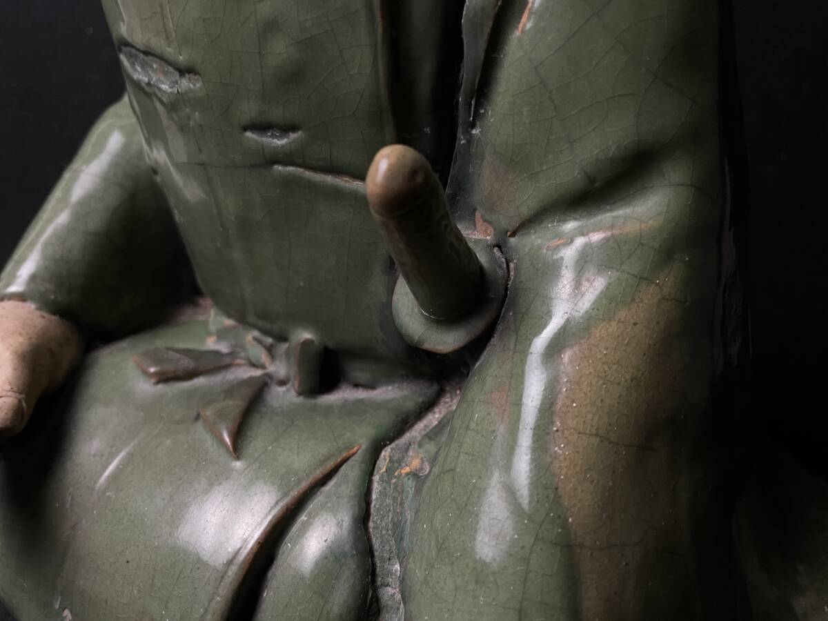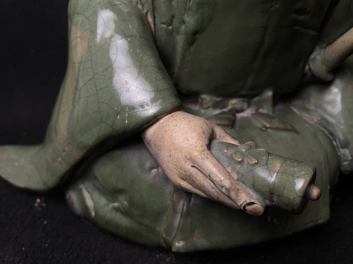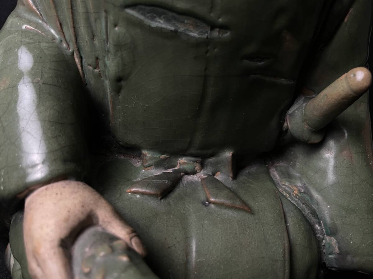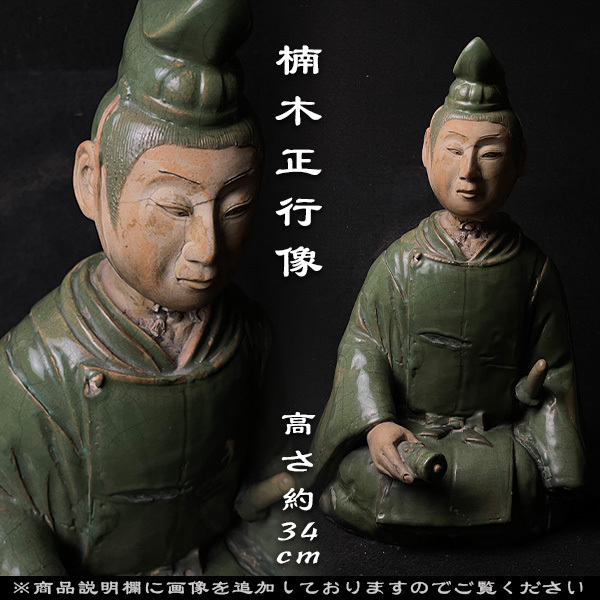 | 古美術品 楠木正行像 古青釉 古青瓷武将立像 青磁人物像置物 時代 高さ約34cm |