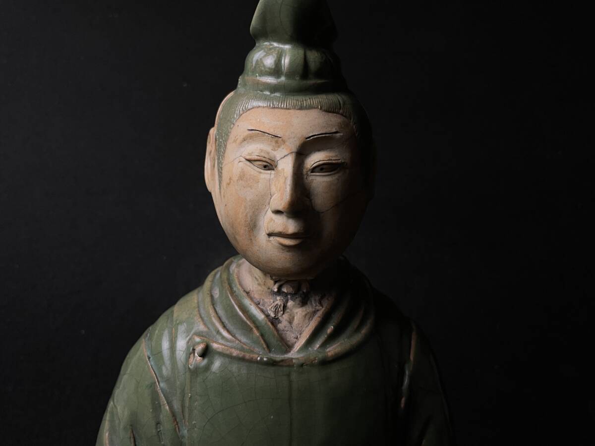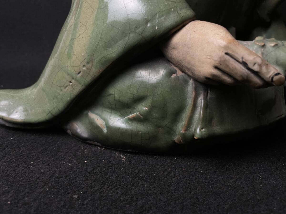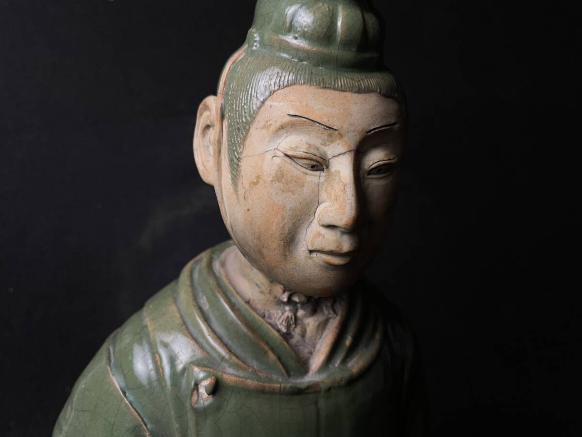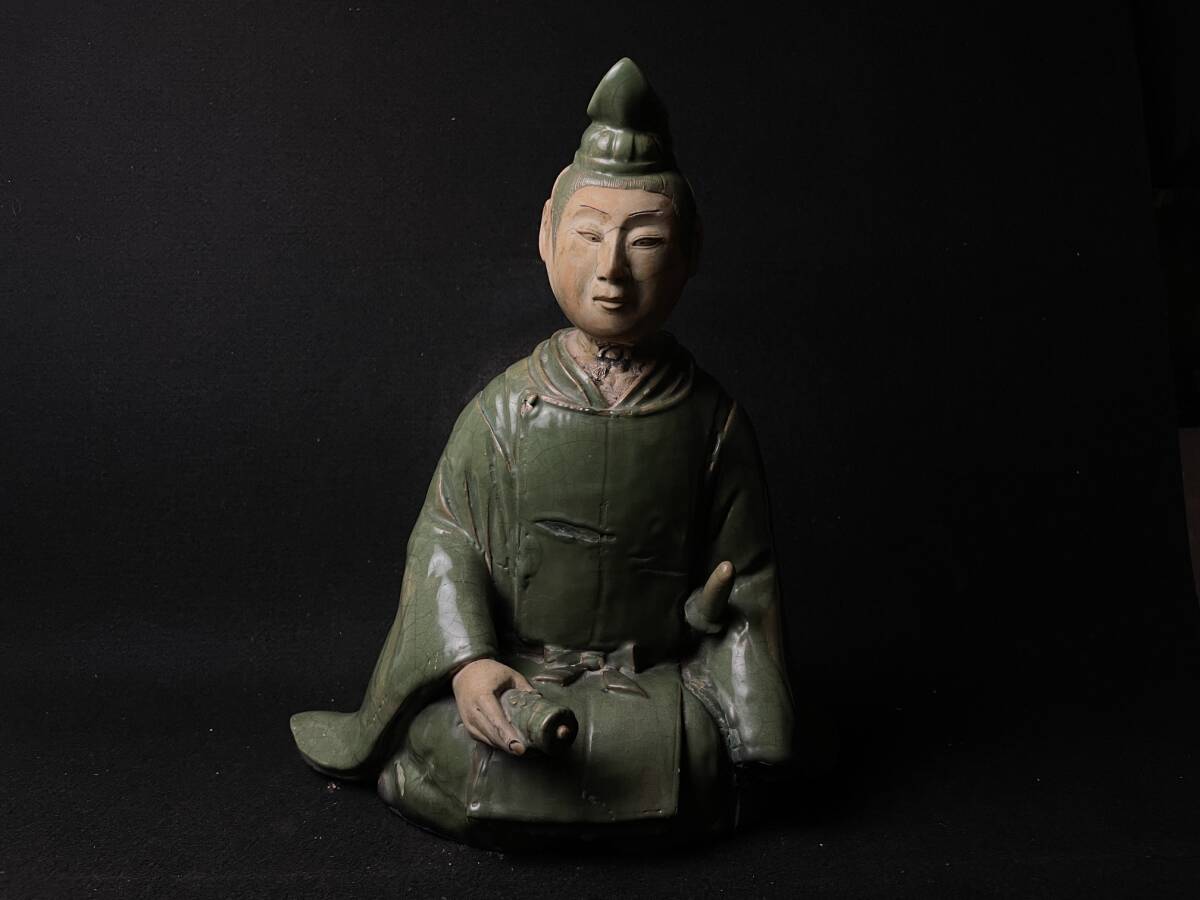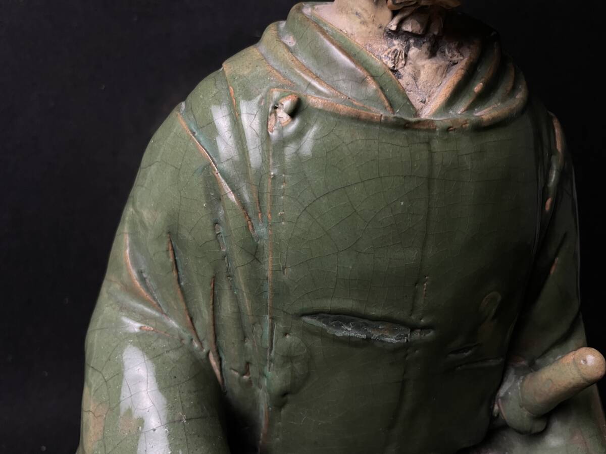 | 古美術品 楠木正行像 古青釉 古青瓷武将立像 青磁人物像置物 時代 高さ約34cm |