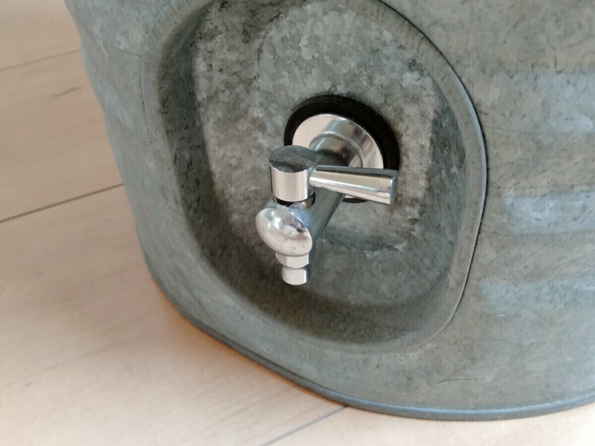 オリジナルのコック部分が白いプラスチック製のプッシュ式で、使い勝手、雰囲気ともによくなかったので、金属製のレバー式に交換しています。(画像7枚目)