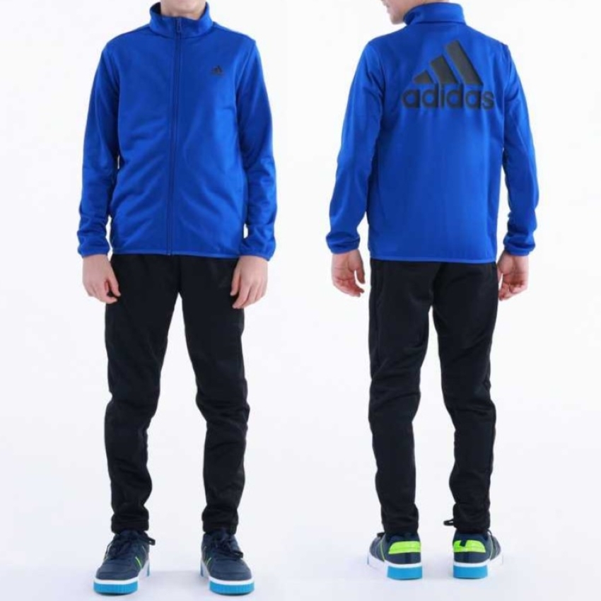 アディダス ジュニア エッセンシャルズ トラックスーツ 160 ブルー/ブラック 青 黒 スタンドカラージャケット&パンツ 子供 ジャージ 上下