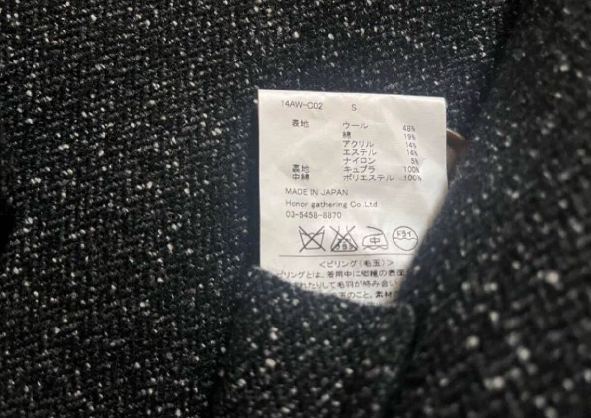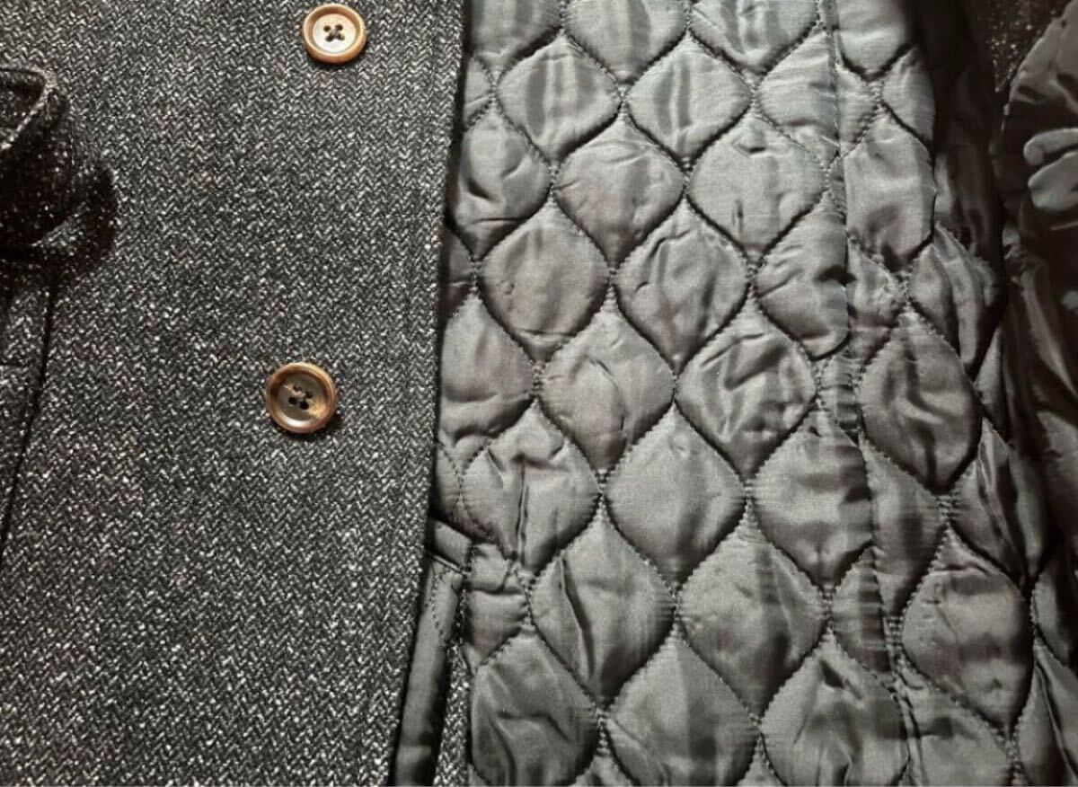 軽めのツイードに高機能中綿素材のシンサレートを裏地に使っている為、あたたかく軽いです。
