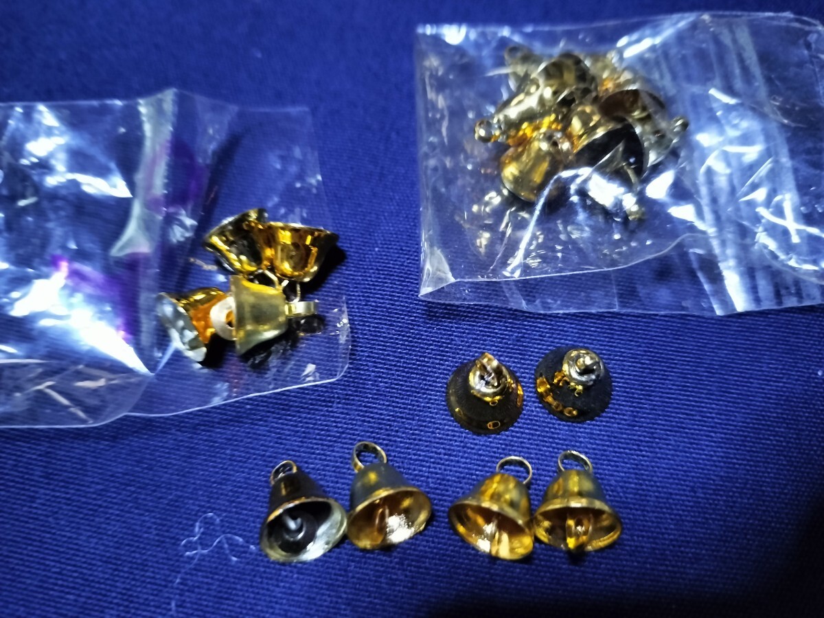 鈴○1.1x1.5cm/1個クスミ感有り 鈴○0.9x1.1cm9個