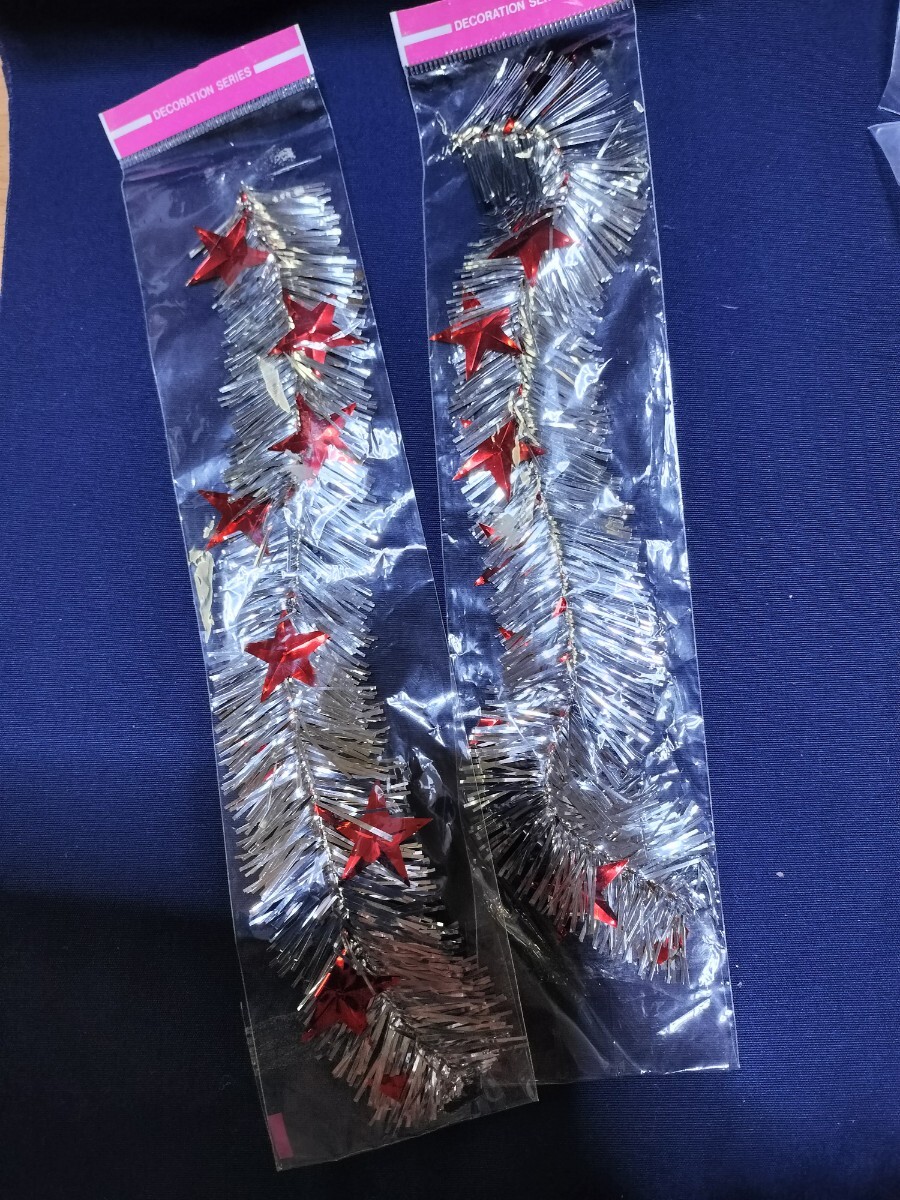 ○アルミ箔様飾りデコレーション飾り サイズ23.5x巾4cm 星7個付きワイヤー入 2個