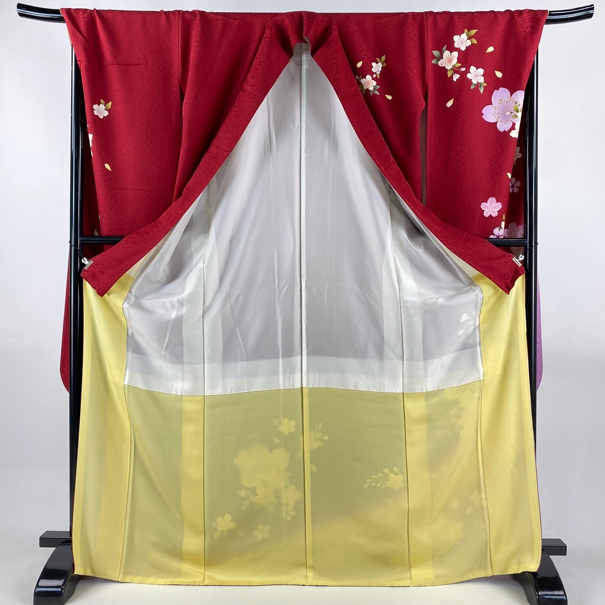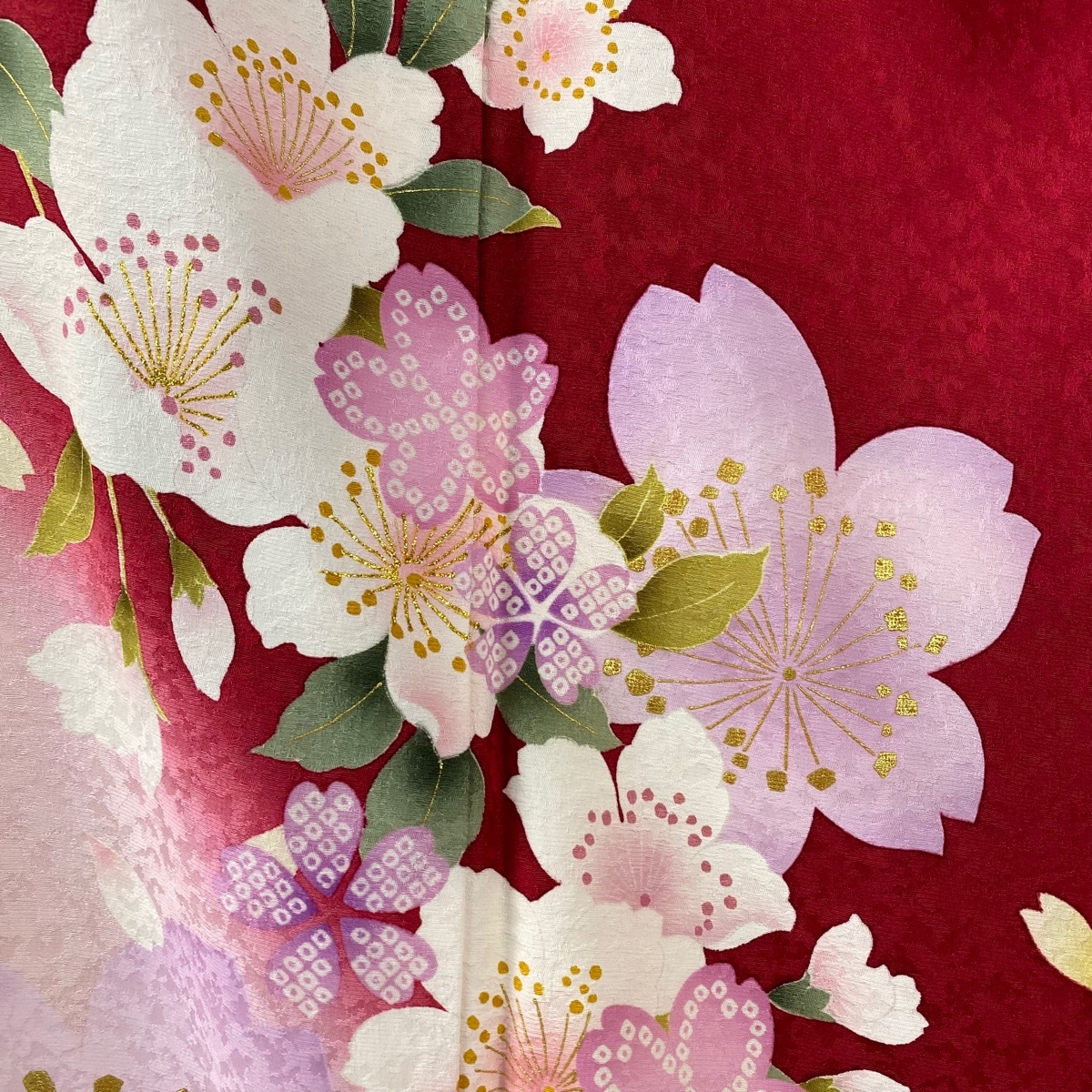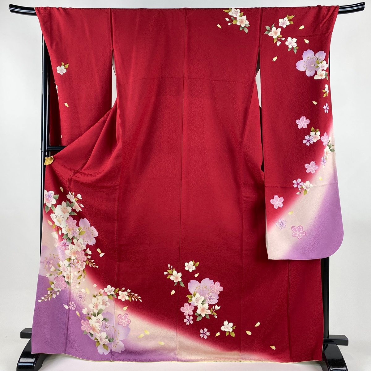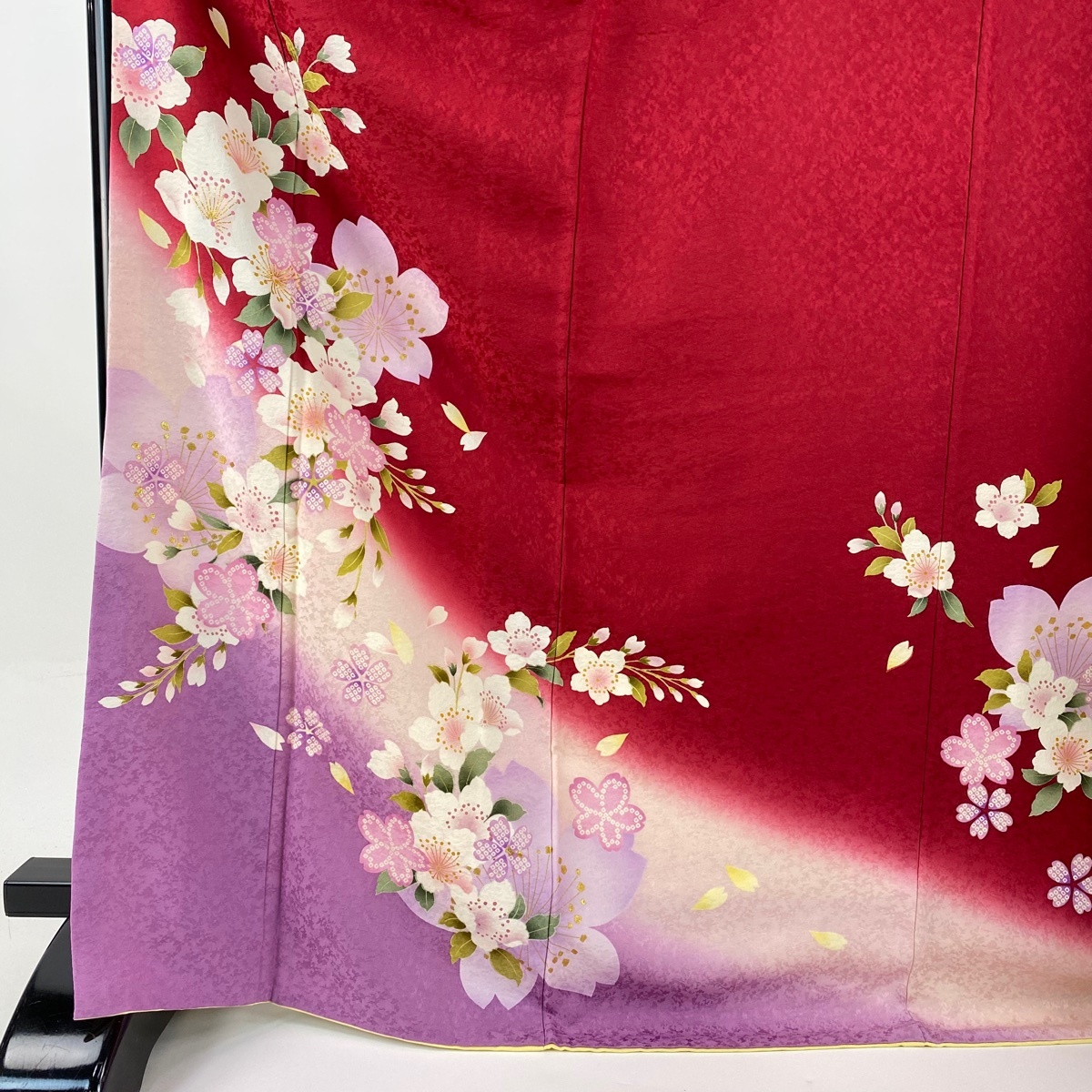 | 振袖 美品 名品 袋帯フルセット 桜 花びら 金彩 ぼかし 赤 袷 身丈172.5 裄丈71 L 正絹 【中古】 |