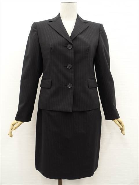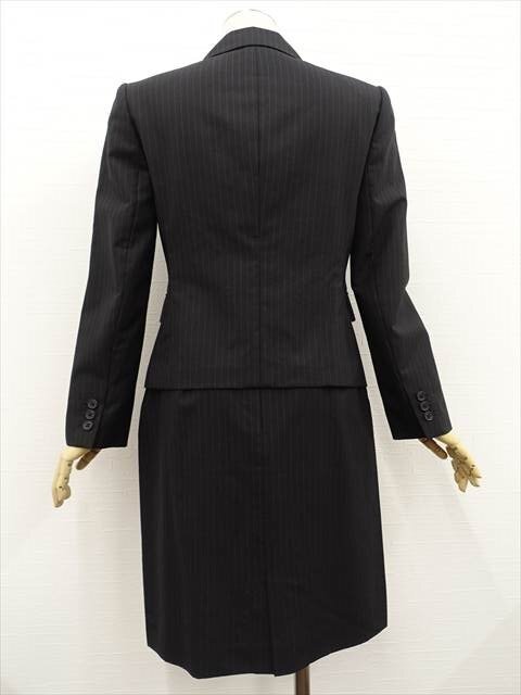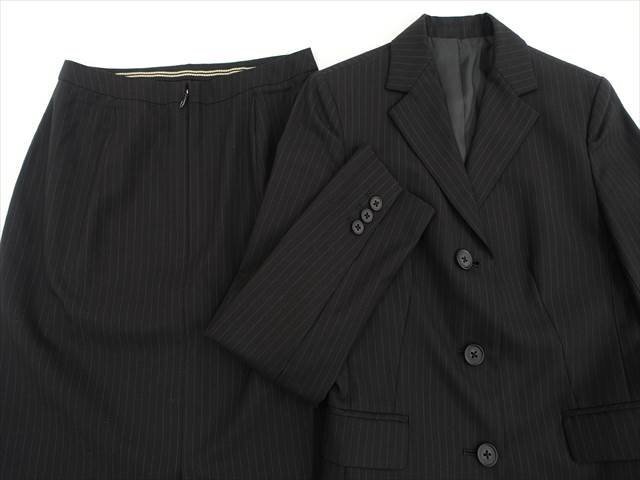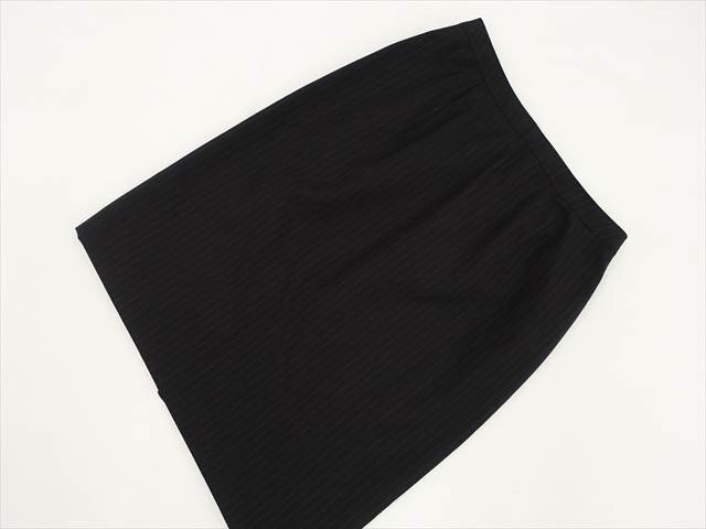 長袖テーラードジャケット+ひざ丈タイトスカート 春夏スカートスーツ上下2点セット 7AR ブラック地 ホワイト ストライプ柄