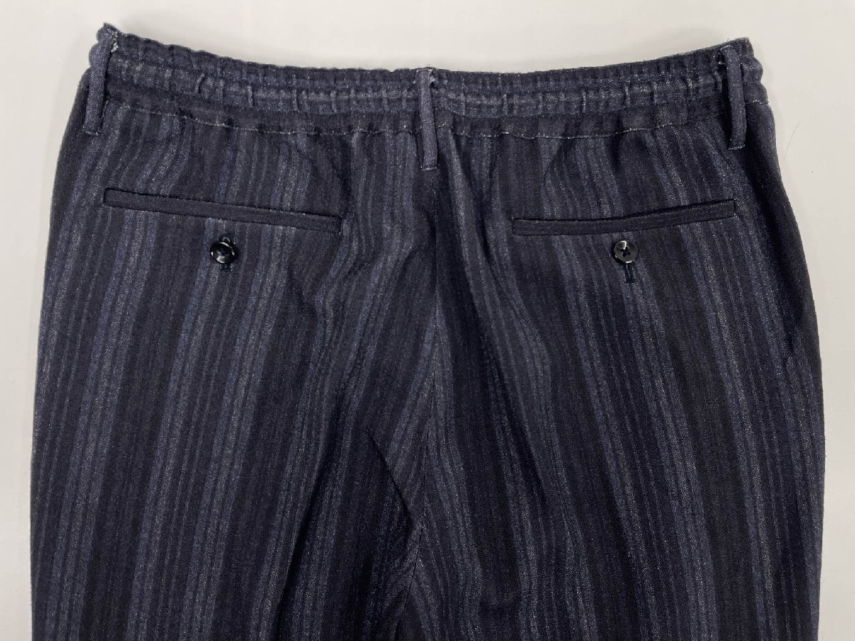 ・スラックス・・・ウエスト実寸約76~84センチ(0センチ出し、4センチ詰め可能)、股上約28センチ、渡り幅約30~31センチ、股下約77~78センチ、総丈約102センチ、裾幅約18センチ、シングル仕上げ(最大6センチ出しが可能)