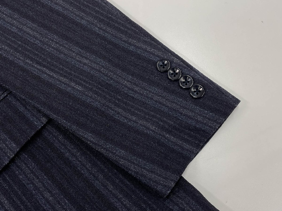 ・全体はブラック×グレー×ネイビー系の糸が織り混ざったストライプ柄です。