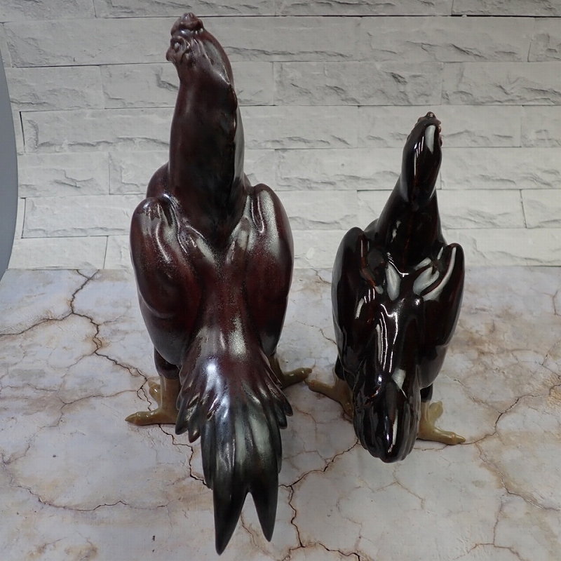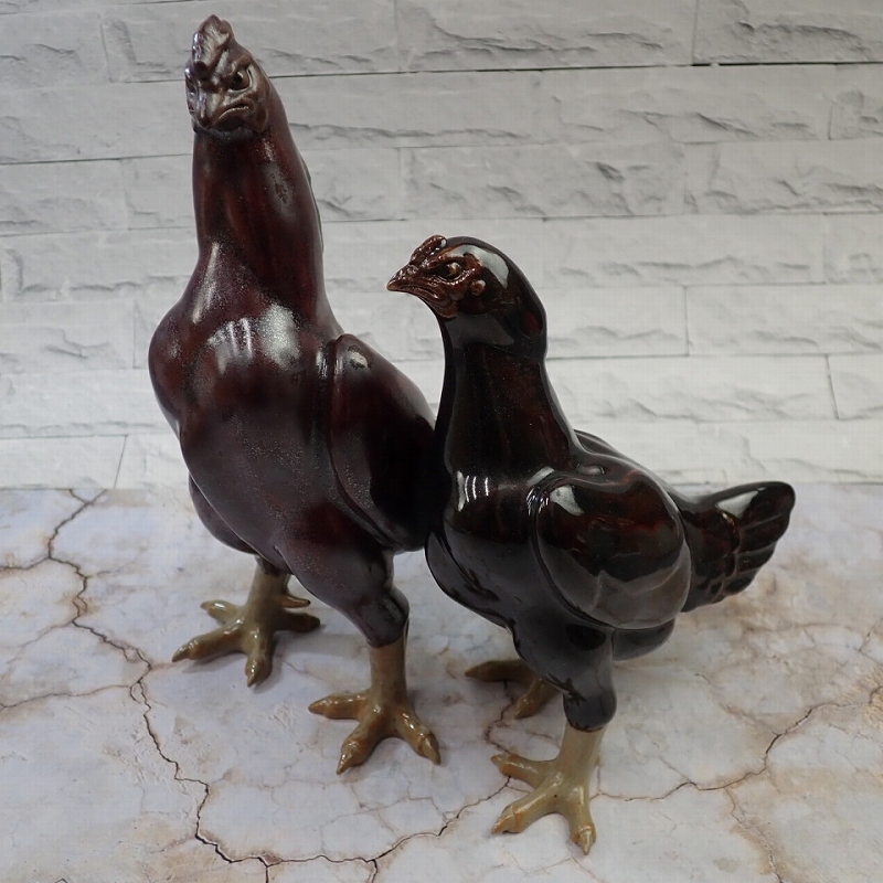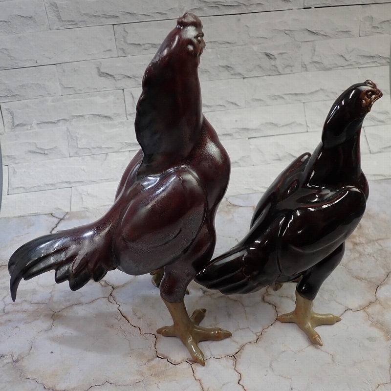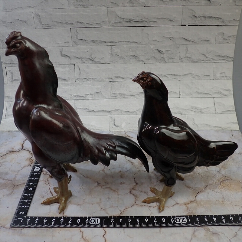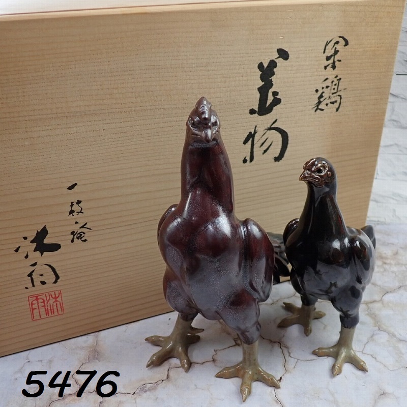 ●FK-5476 一枝庵 沐雨 軍鶏 置物 共箱 20251107