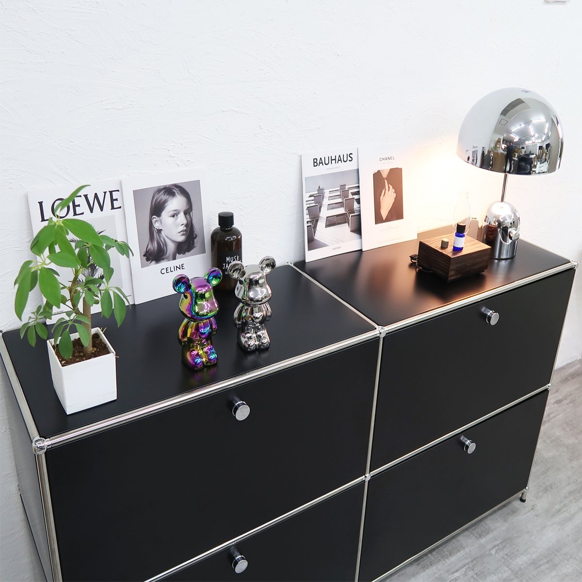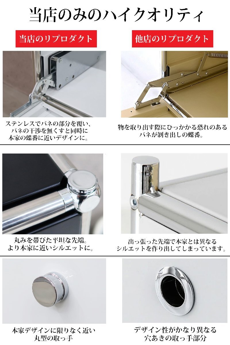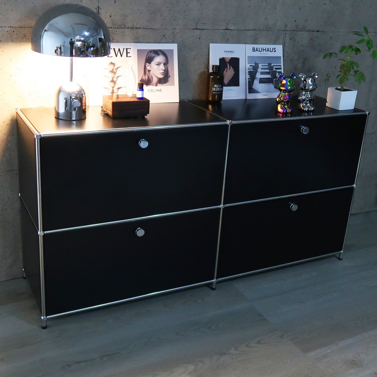 ![]() ※こちらの商品はリプロダクト品になります。 当店オリジナルのデザイン収納「Module(モジュール)」 当店人気のリプロダクトハラー(HL-品番)を販売以来、多くのお客様からご要望を頂いていた 「組み立て簡単」で「手軽に購入出来るハラーが欲しい」との声にお応えし、 スタッフ一同で長い試作期間を設けた末に販売出来る運びとなった当店オリジナルの収納家具です。 見た目の違いはあれど、デザインを崩さない事に重視し、 組み立てのしやすさや収納としての使い勝手の良さにもこだわって製作した末、 誕生したのがこの「Module(モジュール)」です。 ドロップダウンドアが4つ付いた2連2段のサイドボード。 一つの棚の内側は、A4ファイルを縦にしても横にしてもぴったり収納できる高さと奥行で、 平置きでは3つ並べて置くことができる幅があります。 ドロップダウンドアはソフトクローズシステム仕様 通常の仕様ではドアを閉じる際に大きな音がしますが、 ソフトクローズシステムは8割程閉じた時点でゆっくりと静かに自動で吸い込むようにドアが閉まります。 リビングルームやワークスペースなど幅広い場所で活躍する、使い勝手の良いサイズです。 USMハラーとは・・・ 『スイスに拠点を置く「USM(ユーエスエム)」社が手掛ける「USMハラー」は、チューブとボール、 パネルを連結して設計するモジュール式のシステム収納です。 オフィスの収納システム、主に書類や書籍の収納家具としてスタートした USMハラーですが、今では一般家庭にも広まりました。』 サイズ(約):幅150cm×奥行き39.5cm×高さ82cm(アジャスター引き伸ばし時、84cm) 重量(約):41kg 材質: ・フレーム:スチール(クロムメッキ) ・パネル:スチール(パウダーコーティング) カラー:グラファイトブラック 注意事項 |