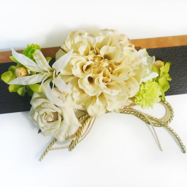 材  料: アートフラワー(ダリア バラ マム ユリ 小花) コサージュピン ユーピン