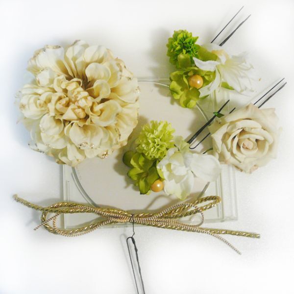アートフラワーの髪飾りです ダリアは2wayのコサージュピン仕立てです