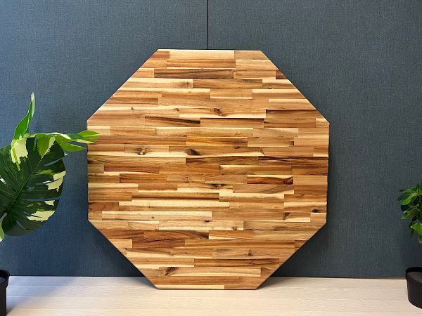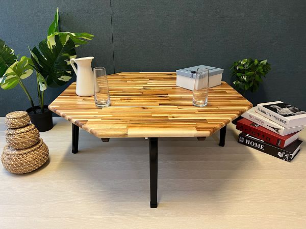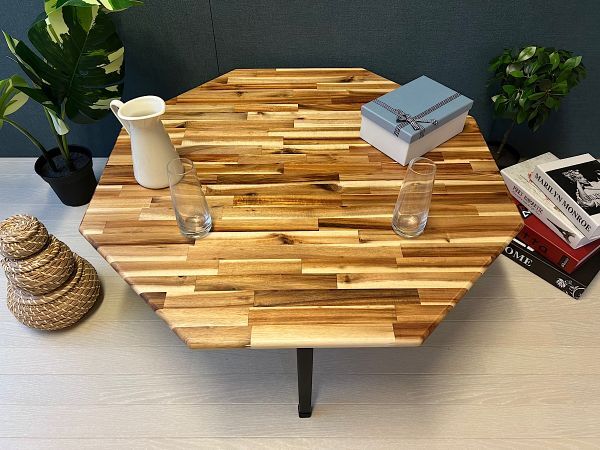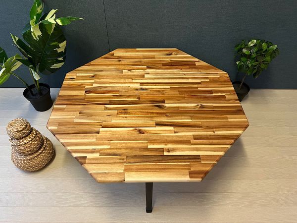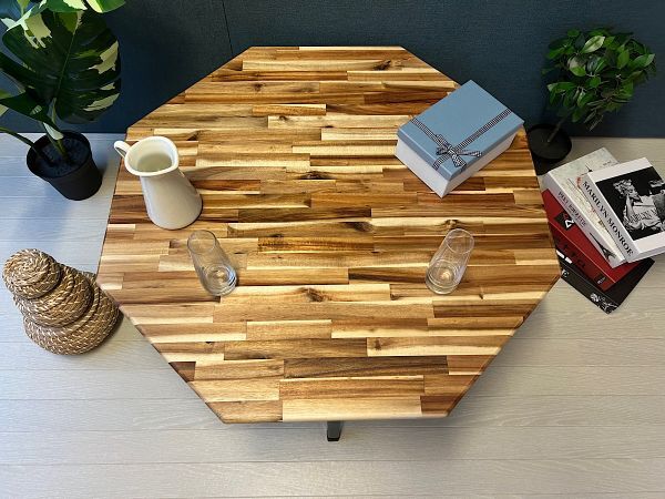 ◎高級感漂う木目が特徴の、アカシア材を天板に使用した8角ローテーブルです。