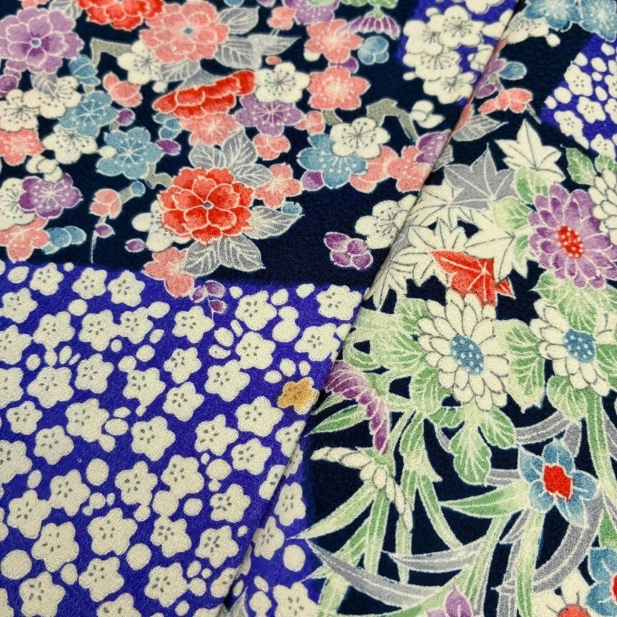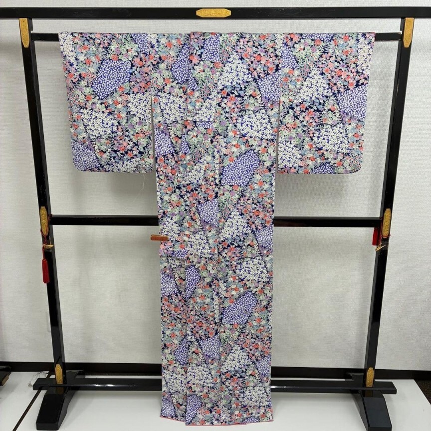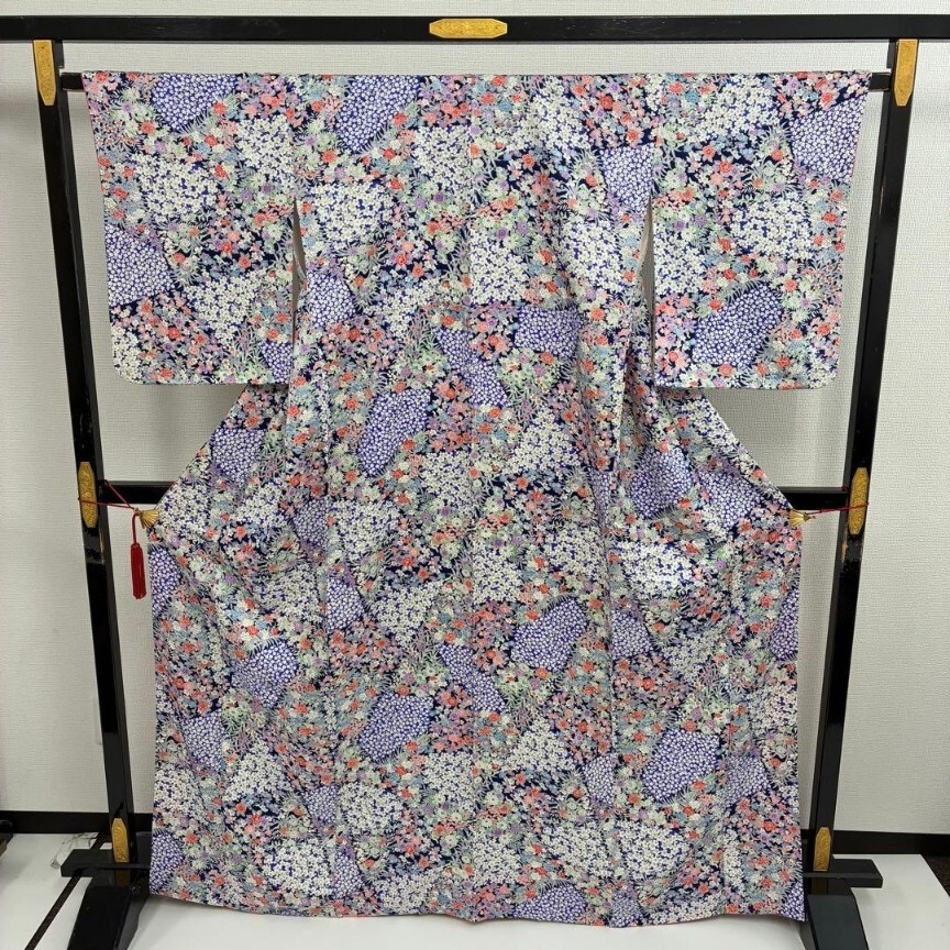 【楓】小紋 正絹 華やかな色味 着物 KU-6280