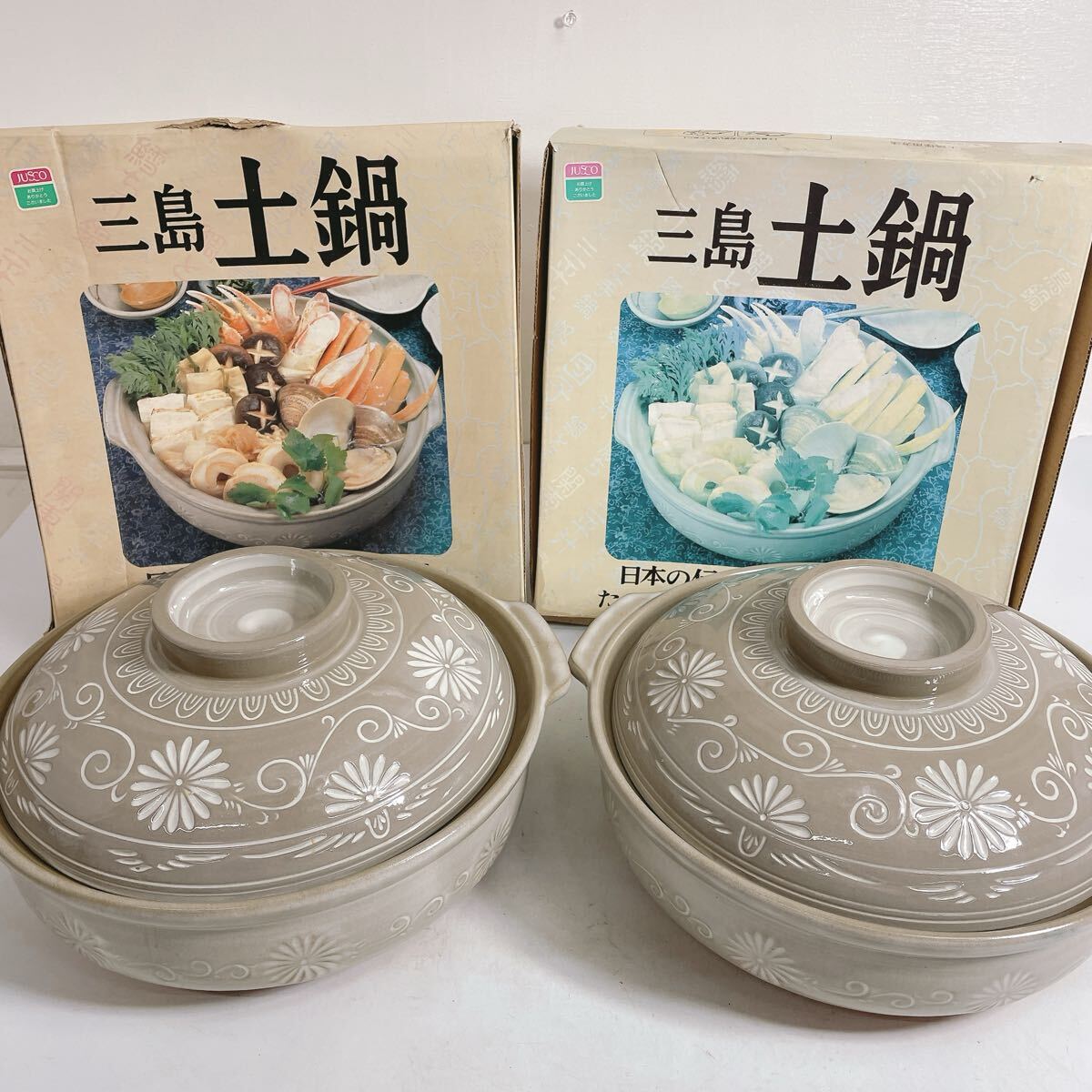 | ◆まとめて2点 三島 土鍋 10号 5〜6人用 約3,700ml 日本製 日本の伝統◆F5 |