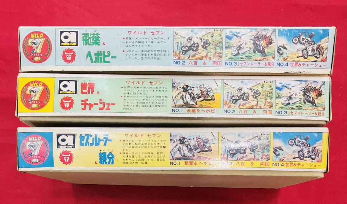アオシマプラモデル 箱と一部パーツのみ ワイルド7 飛葉&ヘボピー 世界&チャーシュー 親分&セブンレーラー(ワイルドセブン、青島)