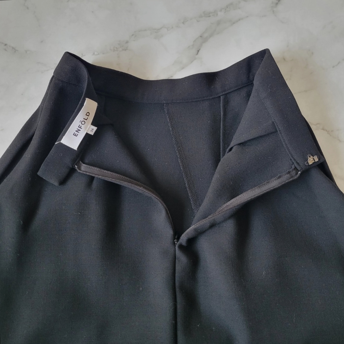 シンプルながらアシンメトリーにタックが入っていてエンフォルドらしいデサインになっています。