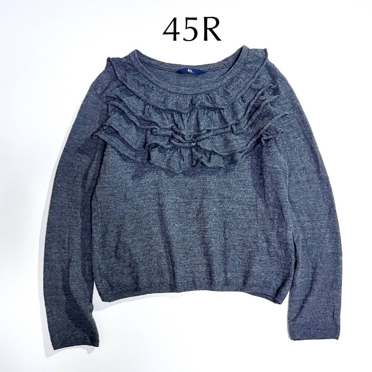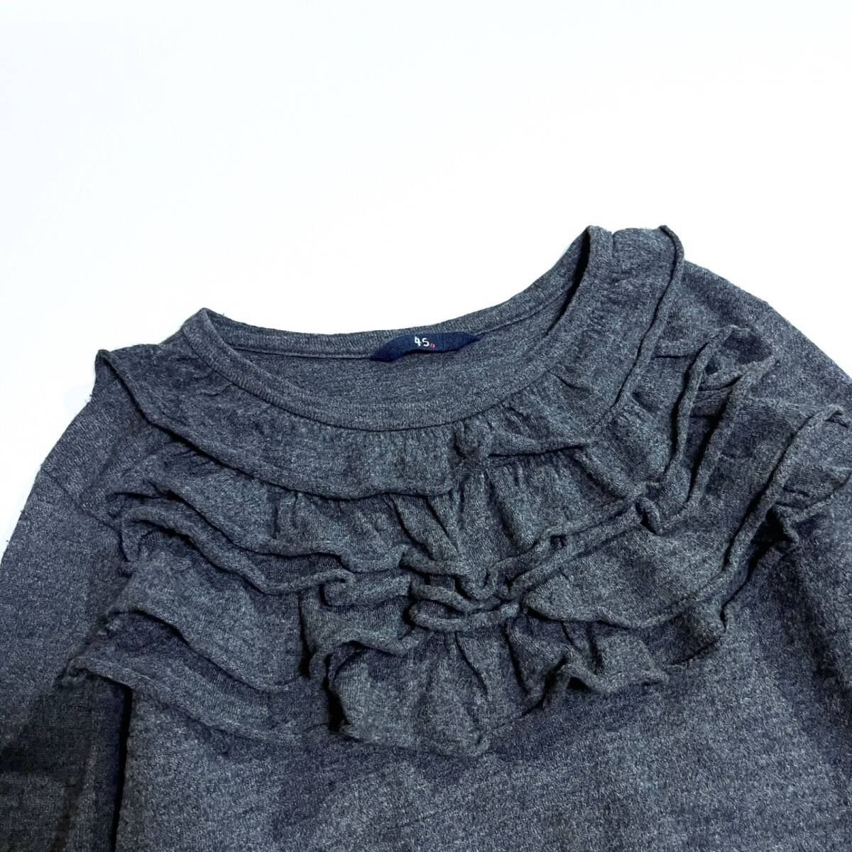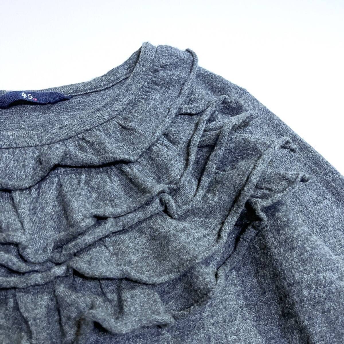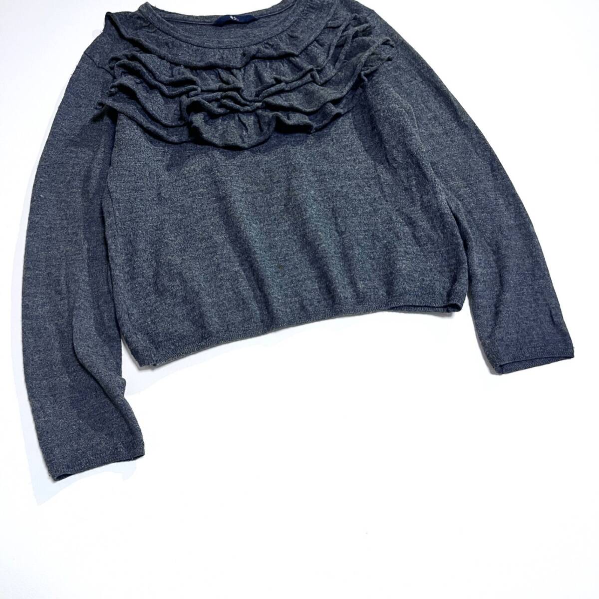 毛 綿 混 ティアード フリル ニット ウール セーター 長袖 チャコールグレー サイズ2 ティアードフリルニット フリルニットセーター クルーネック ドロップショルダー 長袖 ロングスリーブ 日本製 made in japan