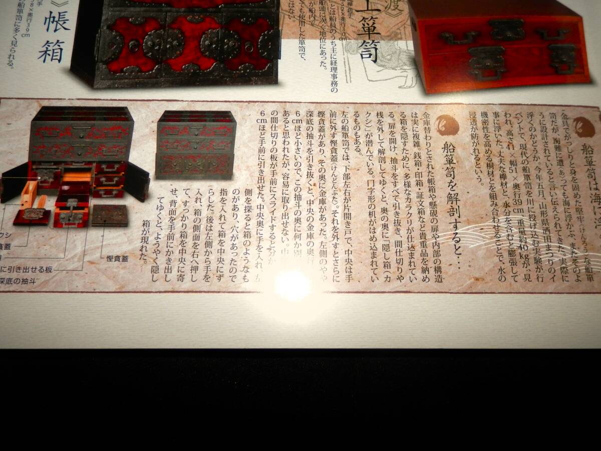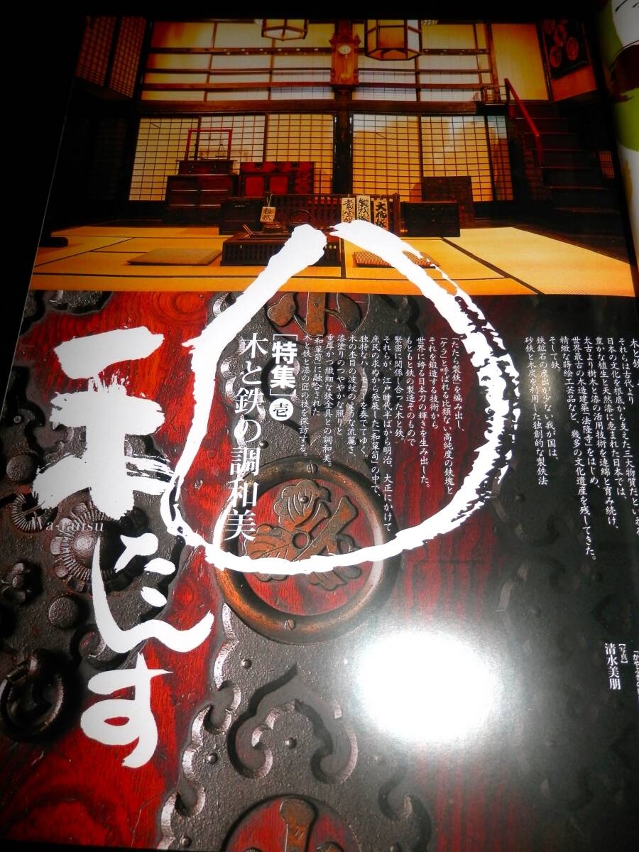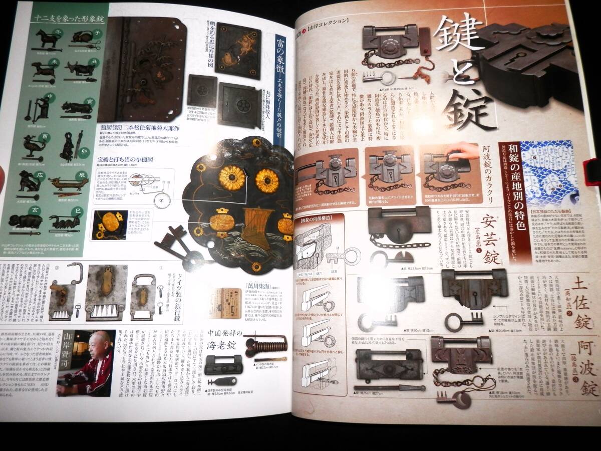 ■■『雑誌』・・・■■ ●●『集』・・・●● ―”第34号”― ◆集出版社。 ―”特集・壱”― ■■『木と鉄の調和美・和たんす』・・・■■ ●「表紙より」・・・● ―”特集・壱”― ◆木と鉄の調和美・『和たんす』。 ★杢目の波紋のような流麗さ、漆塗のつややかな 照りと重厚かつ繊細な鉄金具との調和美・「和 箪笥」・に融合された、木と鉄の匠の技を探訪 する。 ―”特集・弐”― ◆山岸コレクション・『鍵と錠』。 ―”特集・参”― ◆特別インタビュー・『草木と生きる』・草木染・ 山崎青樹。 ■発行日=2007年9月。 ■発行所=株式会社・集出版社。 ■サイズ=18×25.5×1.5cm。 ■状態=美品。 ●表紙に・キズ・ヤケが有ります。 ●本誌内に・わずかな・ヤケが見えますが ●大きなダメージは・無く ●年代的には・良い状態に思います。 ◆◆注意・・・◆◆ ★発行日より・経年を経て下ります。 コンディションに係らず・古書で有る事を 充分に御理解の上・御入札下さい。 ★神経質な方は入札をご辞退下さい・・!! ●全・196頁・・・!! ●特集①・「和箪笥―木と鉄の調和美」。 **”(11頁)”** ―”協力”― ◆かやぶきの郷・薬師温泉・旅籠/箪笥金具職人・ 野崎正明/財団法人・家具の博物館/加賀市・北 前船の里資料館/東京都立中央図書館/時代箪笥 ・「和合」・和合和彦/ギャラリー志摩・陶山治 /ほその書店・細野敏雄。 ―”参考文献”― ◆『箪笥』・小泉和子。 ・(法政大学出版局)。 ◆『和箪笥百選』。 ・(家具の博物館収蔵品図録)。 ◆緑青11・『和箪笥―木と鉄の感触』。 ・(マリア書房)。 ◆緑青21・『時代箪笥―地域別特色と分類』。 ・(マリア書房)。 ◆別冊太陽137・『和家具』。 ・(平凡社)。 ●特集②・「鍵と錠」。 **”(2頁)”** ―”協力”― ◆山岸賢司/群馬県立歴史博物館。 ―”参考文献”― ◆『和錠と宝尽し図鑑』・加藤早苗。 ●特集③・草木染作家・山崎青樹・Interview ・「草木と生きる」。 **”(2頁)”** ―”協力”― ◆草木屋/高崎市染料植物園。 ―”参考文献”― ◆『草木染―色を極めて五十年』。 ・山崎青樹。 ・(美術出版社)。 ◆『古代染色二千年の謎とその秘訣』。 ・山崎青樹。 ・(美術出版社)。 ◆『続・草木染―染料植物図鑑』。 ・山崎青樹。 ・(美術出版社)。 ◆『再刊・生活美学雑誌・月明』。 ・山崎青樹。 ●各項目と・各品に、解説が有ります・・・!! ●歴史のインテリア・骨董の値段がわかる・全国有名骨 董店の・最新・価格情報掲載! ◆専門誌では有りません・骨董誌の巻頭特集です。 ◆掲載の骨董店では・「和箪笥」・も多数掲載され て下ります。 ●蒐集・資料などの参考に・・・!! ●探されていた方は・この機会に・・・!! ●以下・詳細をご覧ください・・・!! ◆掲載案内は・抜粋して下ります。 ◆掲載内容は・Q&Aより・問い合わせ下さい。 ◆数字記載は目視です・間違いは御容赦下さい。 ●掲載を抜粋紹介し・「タイトル」・と致します。 ■■■■■■■■■■■■■■■■■■■■■■■■■■■ ★★★★★★★★★★★★★★★★★★★★★★★★★★★ ―”特集・壱”― ■■『木と鉄の調和美・和たんす』・・・■■ ★木と鉄、そして漆。 それらは古代より、日本の文化を根底から支えた三大 物質だといえる。 豊かな植生と天然漆に恵まれた日本では、太古より樹 木と漆の活用技術を連綿と育み続け。 世界太古の木造建築・「法隆寺」・をはじめ、精緻な 蒔絵工芸品など、幾多の文化遺産を残してきた。 そして鉄。 鉄鉱石の産出が少ない我が国は、砂鉄と木炭を利用し た独創的な製鉄法・「たたら製鉄」・を編み出し・「 ケラ」・と呼ばれる比類ない高純度の鉄塊とそれを鍛 造する技術から、世界に誇る日本刀の輝きを生み出し た。 もともと鉄の製造そのもので、緊密に関係し合った木 と鉄。 それらが、江戸時代半ばから、明治・大正にかけて庶 民の求めから発展した・「和箪笥」・の中で独特のハ ーモニーを奏でてゆく。 杢目の波紋のような流麗さ、漆塗のつややかな照りと 、重厚かつ繊細な鉄金具との調和美。 「和箪笥」・に融合された、木と鉄の匠の技を探訪す る。 ●●『和箪笥の誕生』・・・●● ―”箱から抽斗へ”― ◆車長持。 ・総欅。 ・車は栗材。 ・米沢産。 ・江戸中期~後期。 ◆武家長持。 ・総桐。 ・産地不明。 ・江戸時代。 ◆車箪笥。 ・総欅。 ・産地不明。 ・江戸後期~明治。 ●●『和箪笥・鑑賞の予備知識』・・・●● ●「箪笥各部の名称」・・・● **”22箇所”** ★1・天井板。 ★2・引き戸。 ★3・小抽斗。 ★4・盆。 ★5・棚板。 ★6・両開き・(観音開き)。 ★7・端喰。 ★8・抽斗。 ★9・裏板。 ★10・地板。 ★11・片開き戸。 ★12・仕切板。 ★13・定規縁。 ★14・側板・(帆立)。 ★15・閂。 ★16・台輪。 ★17・横脚。 ★18・前脚。 ★19・先側・(先板)。 ★20・底板。 ★21・奥行・(入側)。 ★22・前板。 ●「金具各部の名称」・・・● **”22箇所”** ★1・帯金具。 ★2・差込錠。 ★3・座金。 ★4・引手。 ★5・隅金