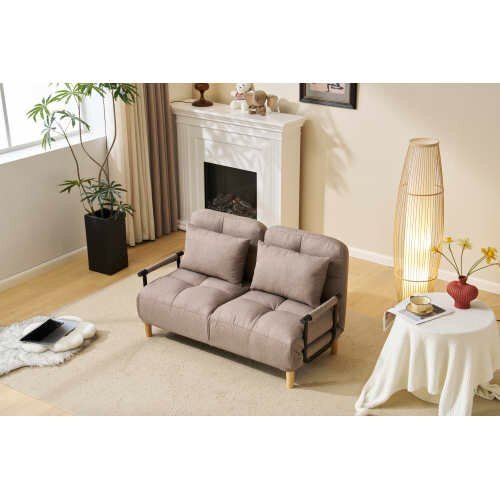 ソファベッド折りたたみ 3WAY ファブリック生地カウチソファー肘付き カウチリクライニング組立品調節可能な背もたれ ふわふわ6段階調節2.6
