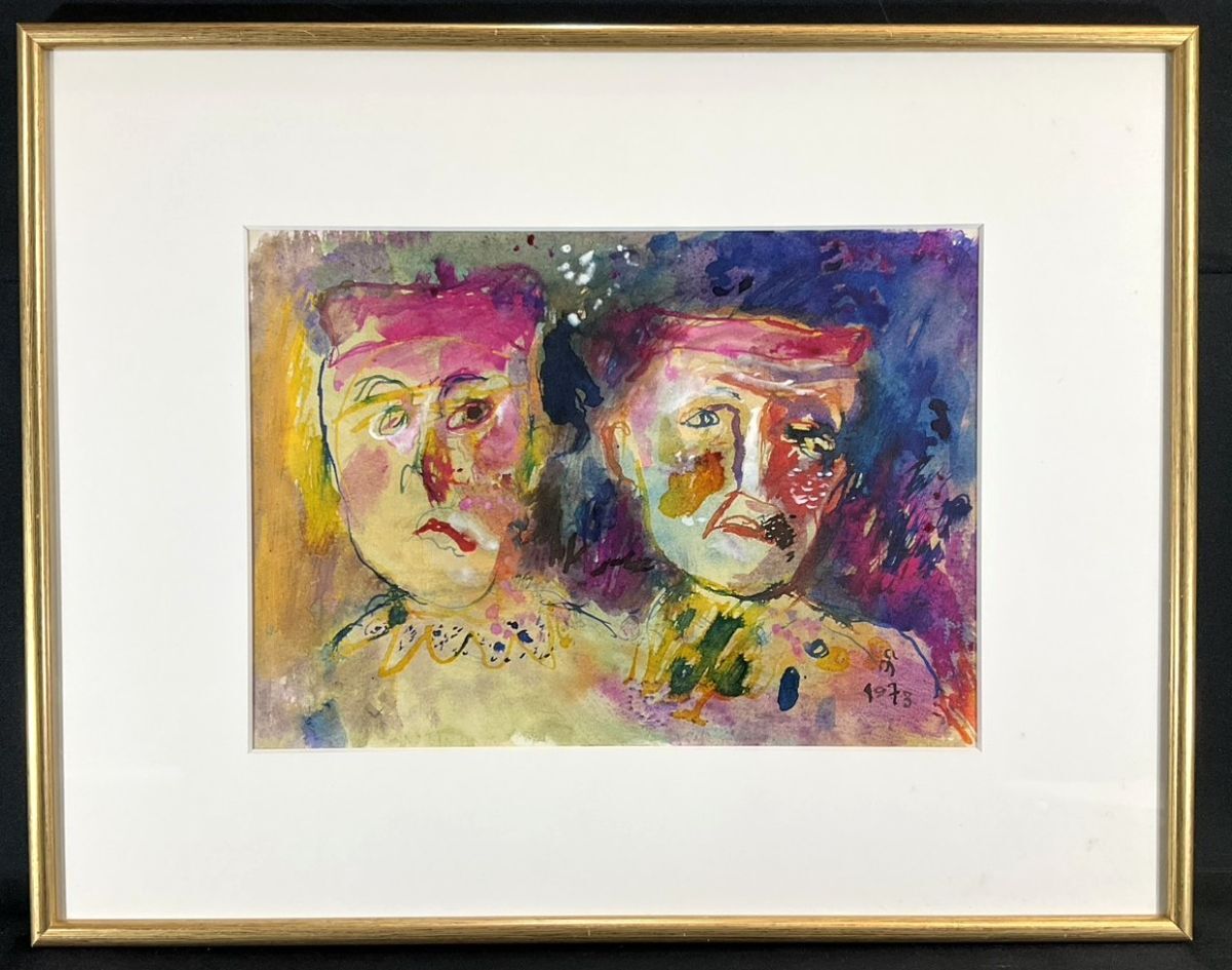 真作■水彩■永田力■『二人』■1973年■風間完らと活躍 講談社さしえ賞受賞 ■額付絵画