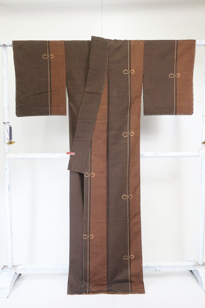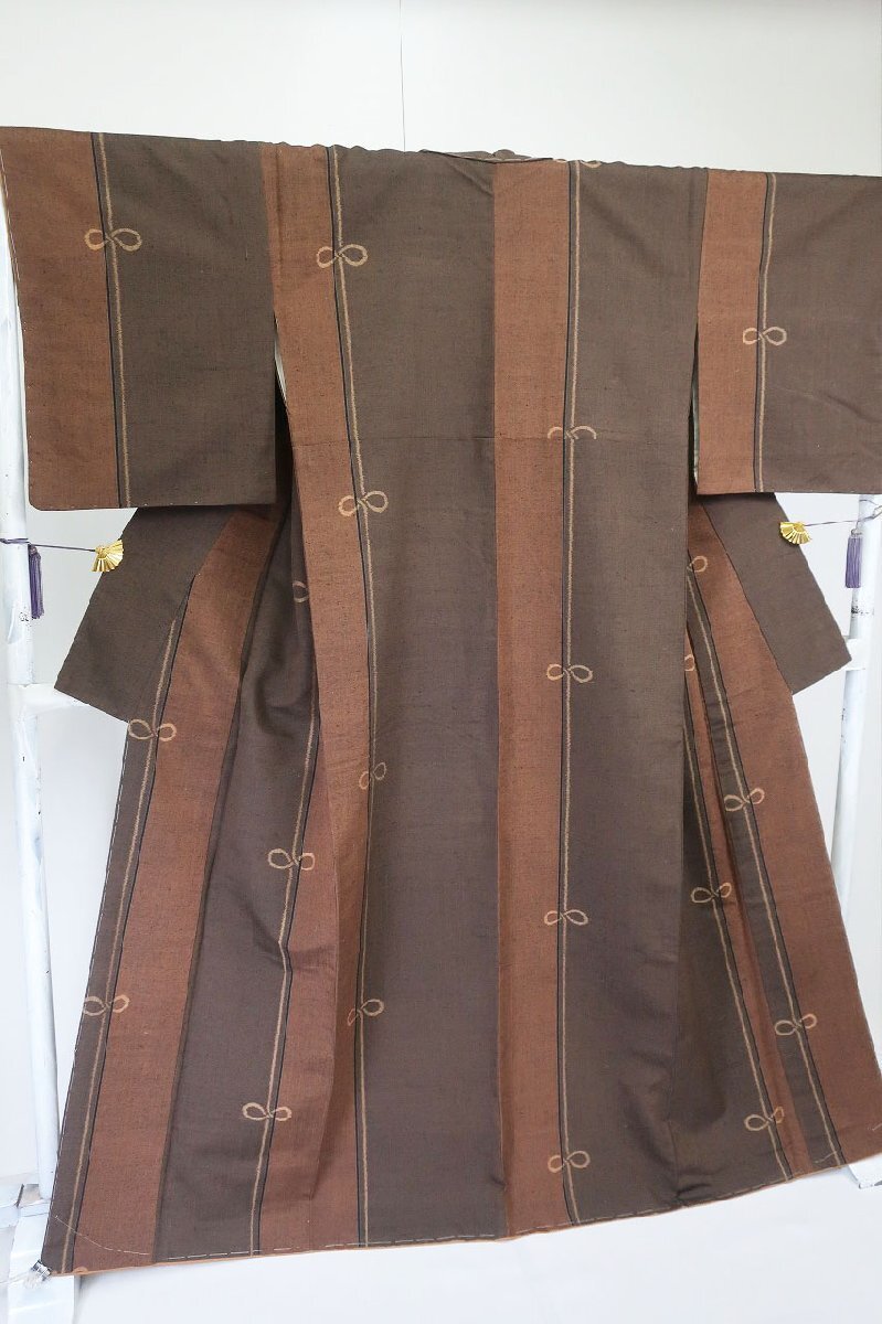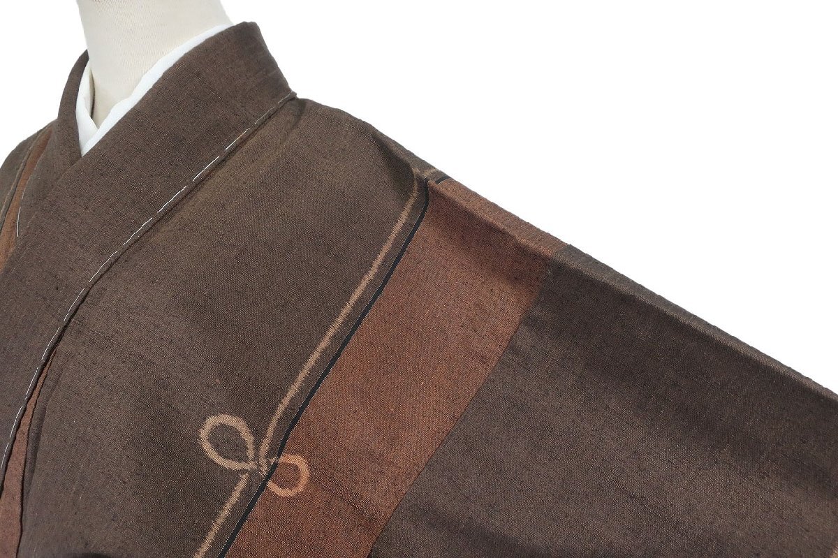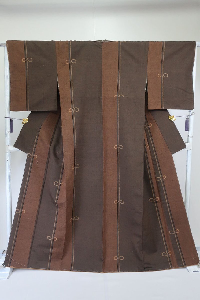 | 未使用品 紬 結び文様 焦げ茶色濃淡 身丈164.0cm 裄丈67.0cm 袷 正絹 お洒落 仕立て上がり カジュアル 着物フィ m-8470 |