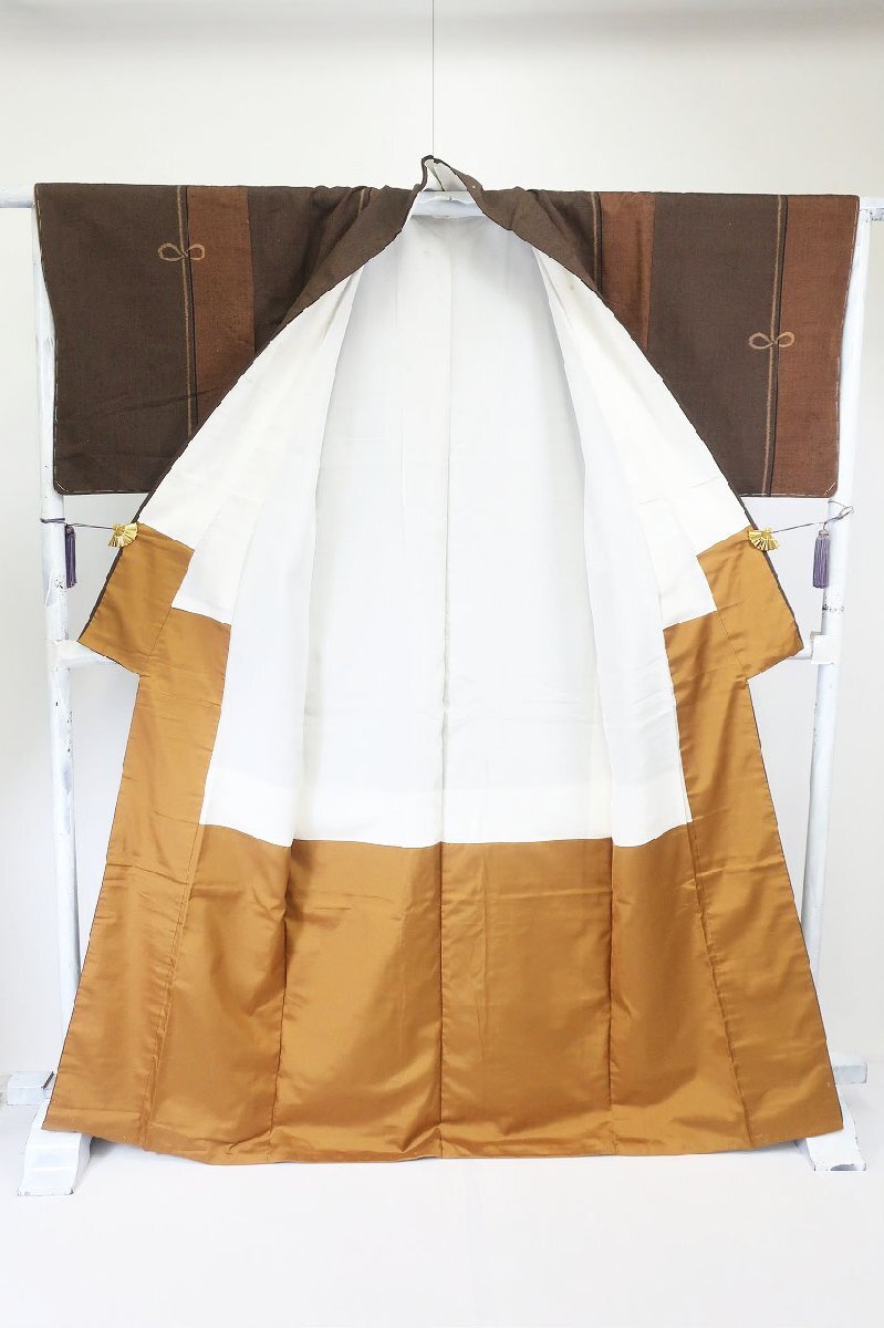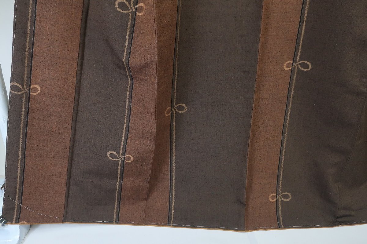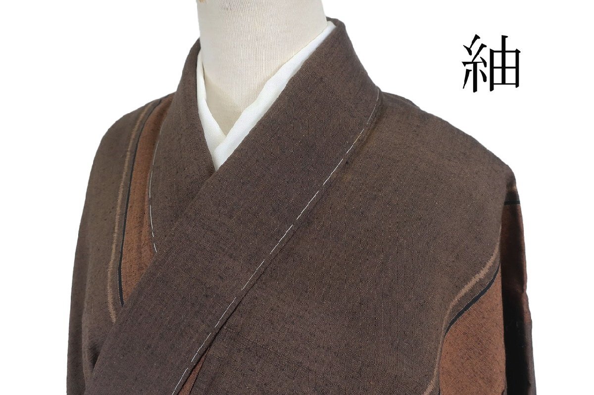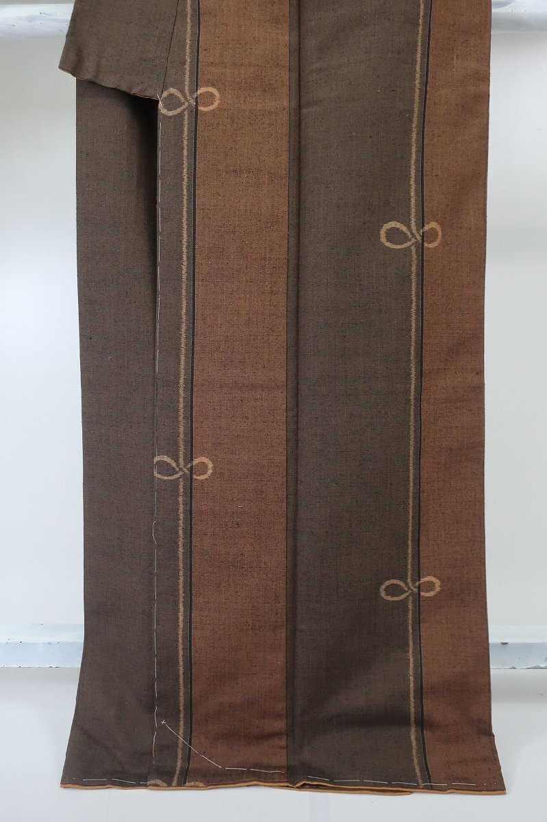 | 未使用品 紬 結び文様 焦げ茶色濃淡 身丈164.0cm 裄丈67.0cm 袷 正絹 お洒落 仕立て上がり カジュアル 着物フィ m-8470 |