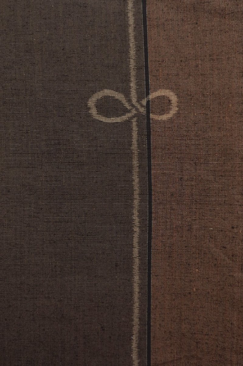 焦げ茶色濃淡地に結び文様があしらわれた紬です。 シックな落ち着いた色味に紬の風合いがお洒落な一枚です。 未使用品です。 担当:前田 |