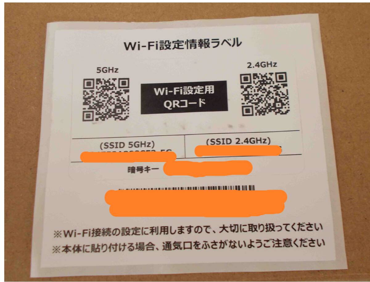 付属品:電源アダプタ、LANケーブル(未使用)、Wi-Fi設定情報ラベル、取説
