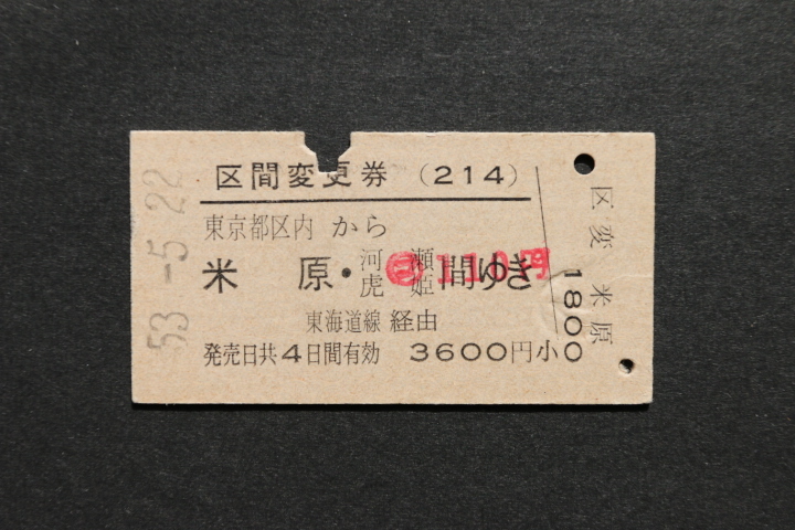乗車券 区間変更券 東京都区内から 3駅間ゆき 3600円