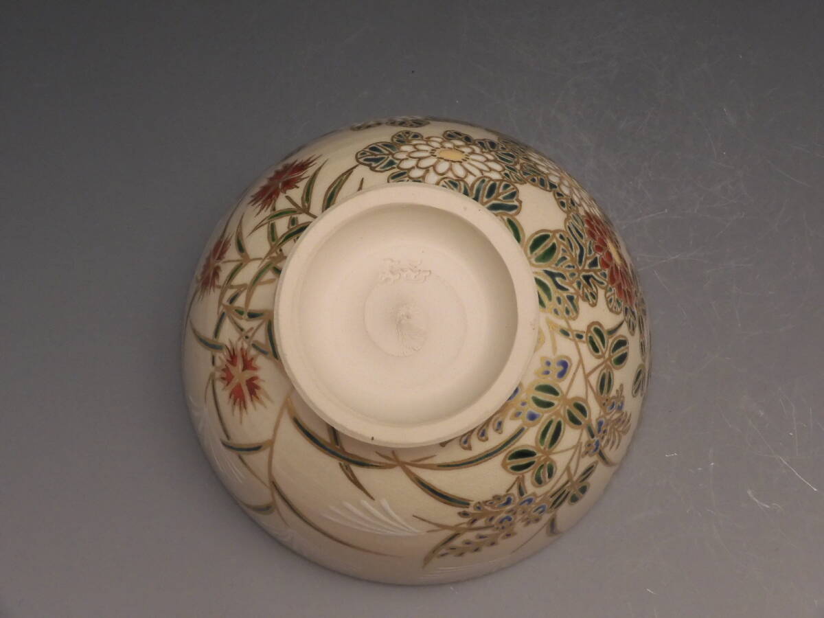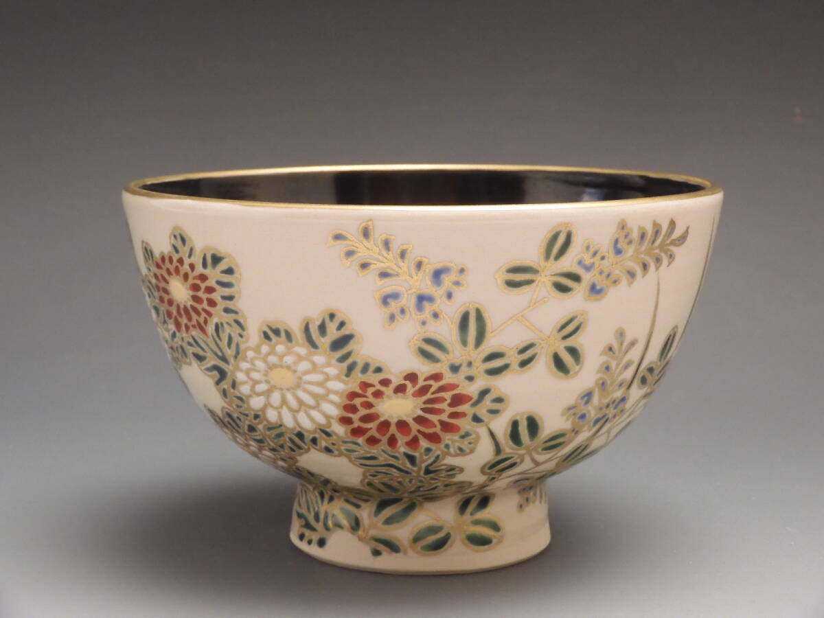 | ◇桔◇平安 田中 陶岫 造 金彩 色絵 花秋草図 茶碗 茶道具 共布 共箱 無傷 未使用 E10◇ |