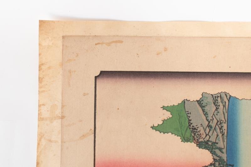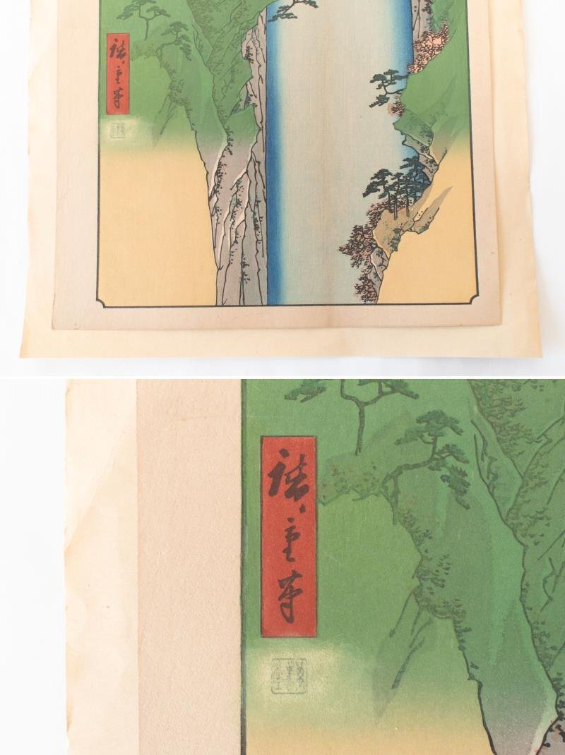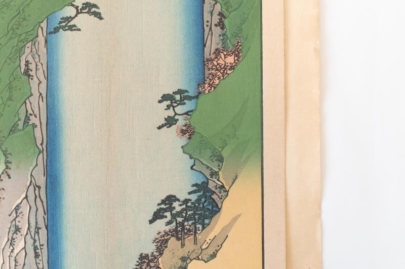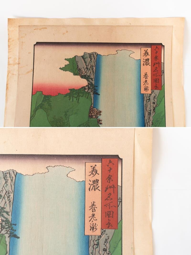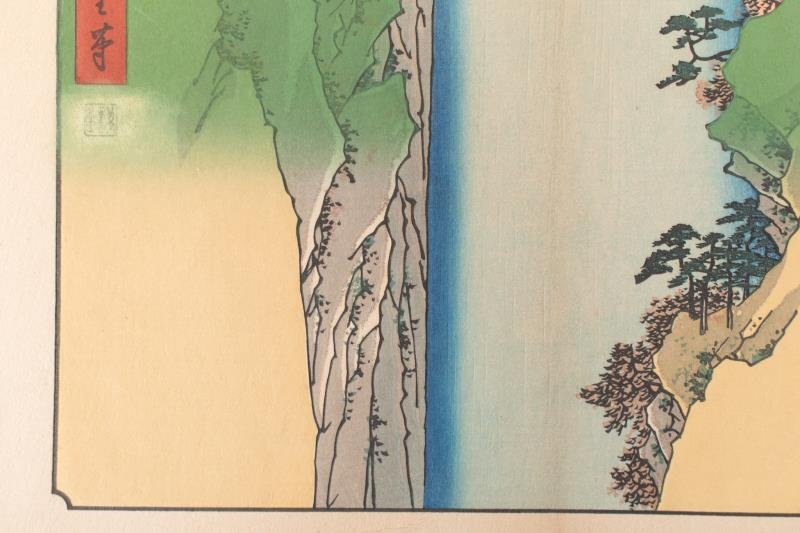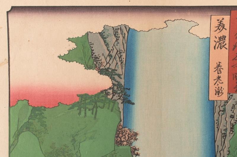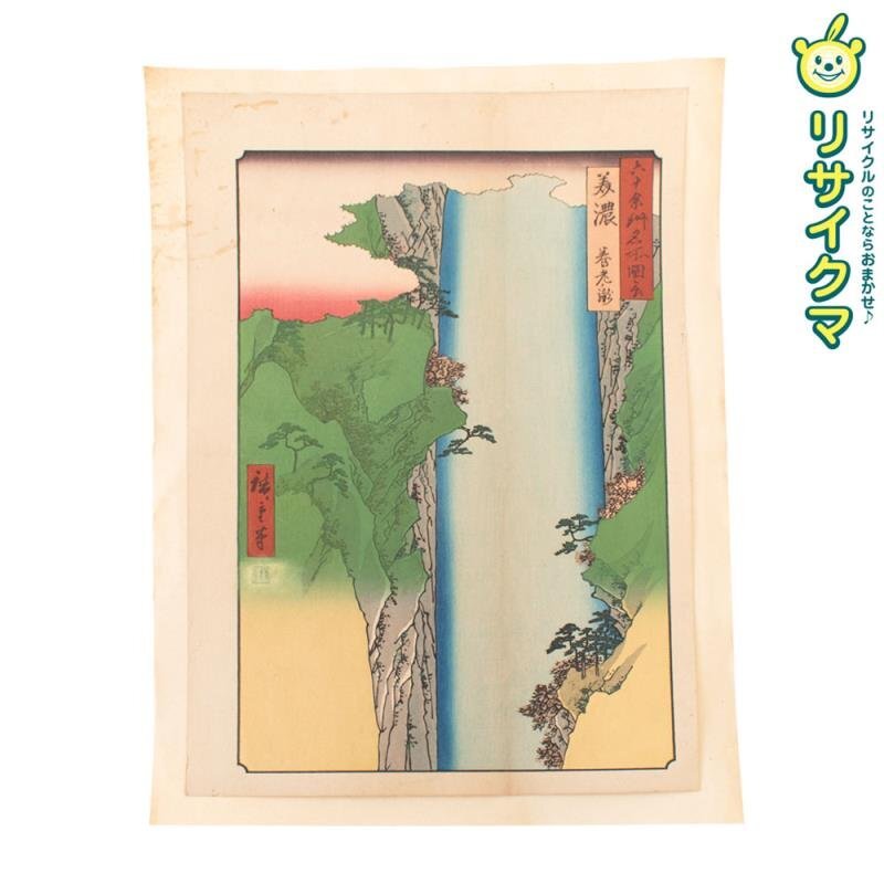 【中古】M▽歌川広重 六十余州名所図会 美濃 養老ノ瀧 木版画 風景画 浮世絵 錦絵 大判 (K00581)