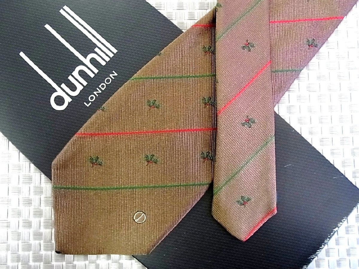 【在庫処分セール】■特売■FK2-0133W■ダンヒル【ヒイラギ 植物 ストライプ dロゴ 柄】ネクタイ■