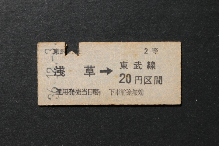 東武鉄道 乗車券 浅草→ 20円2等