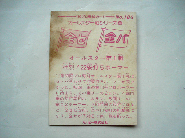カルビー 1980年 186番 オールスター第1戦 壮烈!22安打5ホーマー オールスター戦シリーズ40 '80オールスター戦 '80プロ野球カード