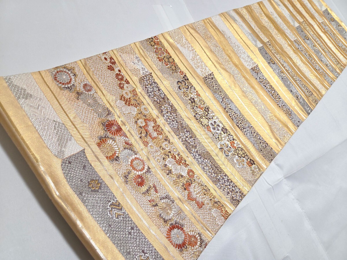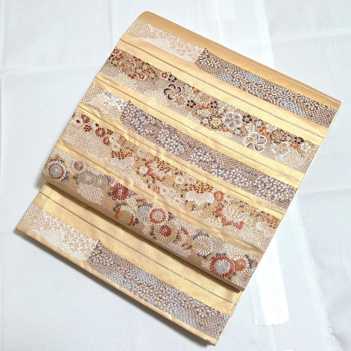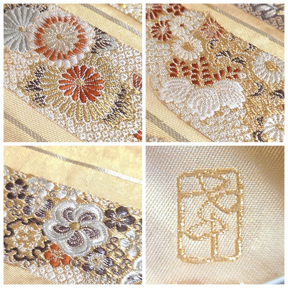 こちらは、西陣織 加納幸 横段菊花模様 金糸 六通 正絹 フォーマルな袋帯になります。