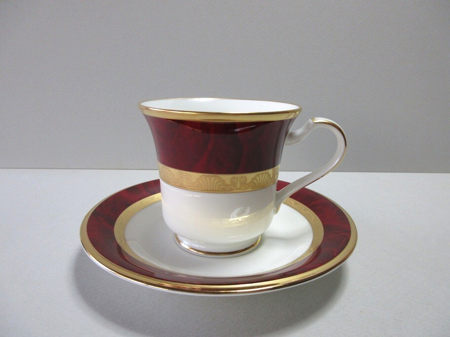 ゴールドのレリーフと大理石調の艶のあるお色のコントラストが美しいエレガントで高級感のあるお色違いのペア・アメリカン碗皿です。