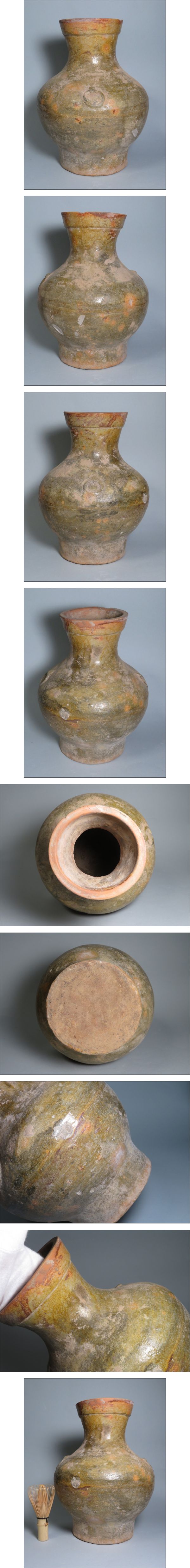 | 「都内コレクター所蔵品」4-4 漢時代 緑釉大壷 中国美術 東漢時代 ◆加彩 花瓶 発掘 彩文土器 彩陶壺 | ||