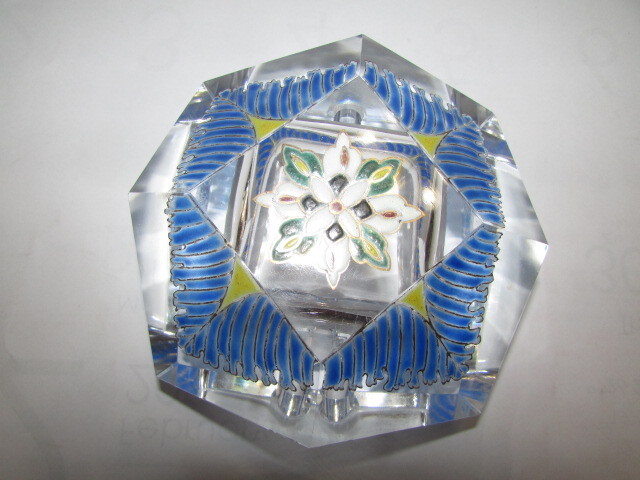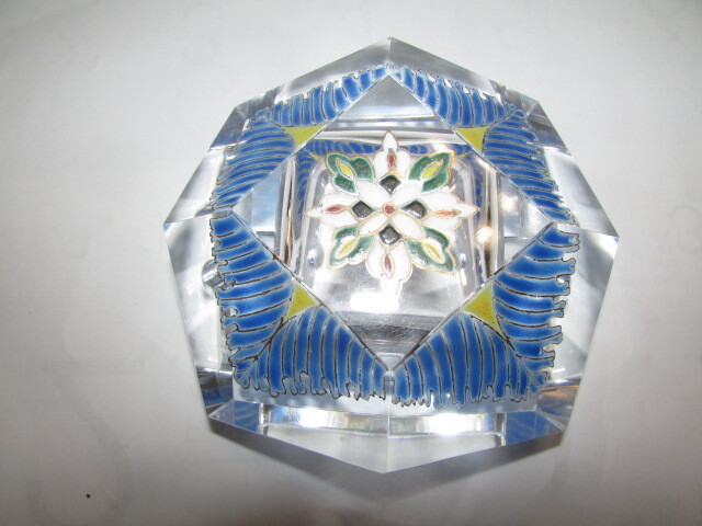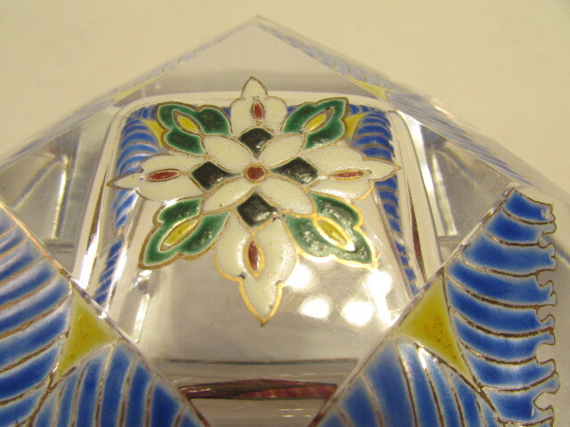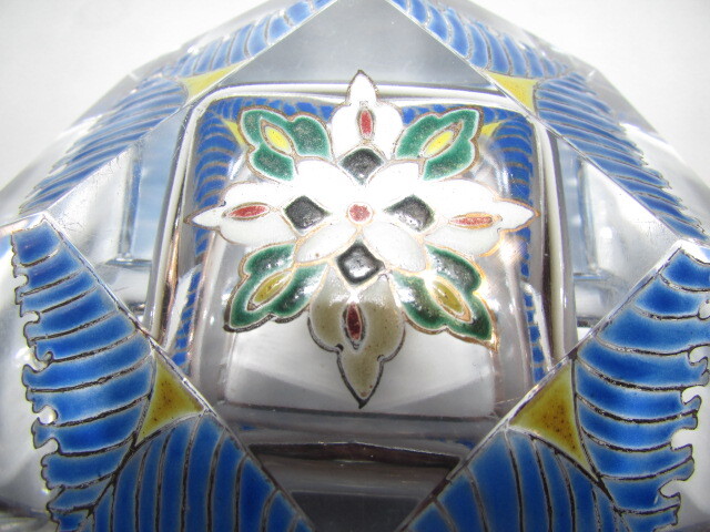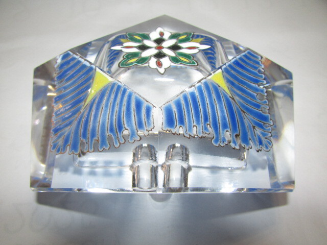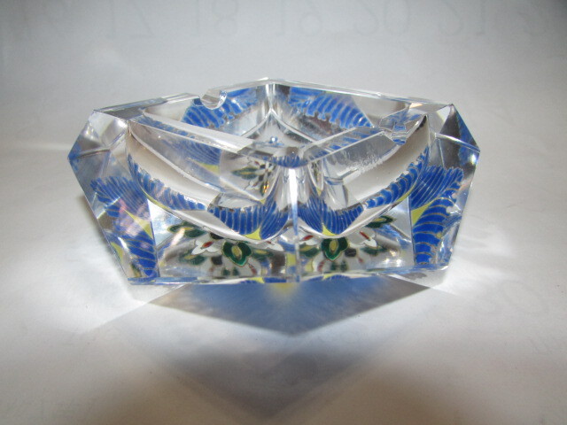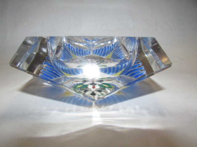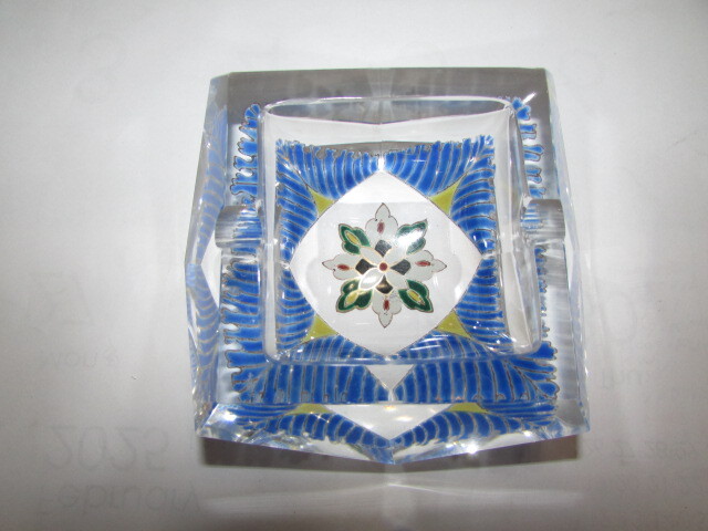 ( 会津若松・旧家・蔵出し)( 古い時代の味わいのあるガラス灰皿・手塗花模様 )小物入れに・貴重・珍品