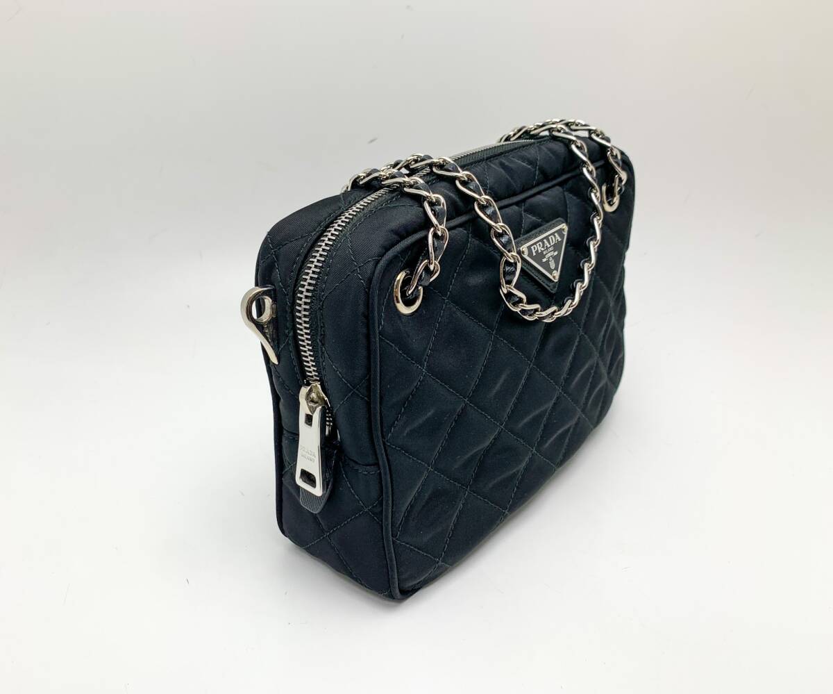 | プラダよりチェーンハンドルのハンドバッグになります。ショルダーストラップ付きで、2WAYでお使いいただけます。ミニウォレット、スマートフォンなど必要なものは入ります。Aランク。金具にうっすらクスミ・小傷あり。持ち手レザー部分に軽微な擦れを感じますが、大きな問題のない綺麗なお品です。 | |